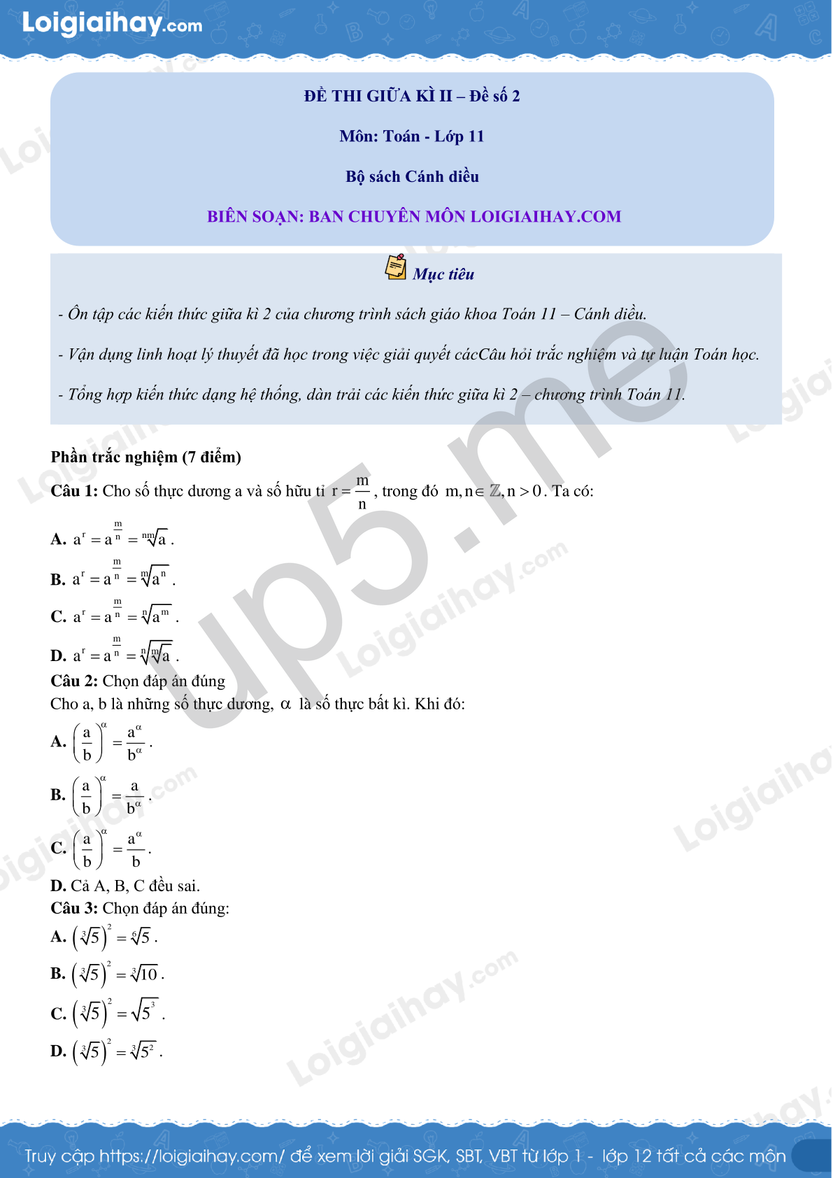 ĐỀ THI GIỮA KÌ II – Đề số 2