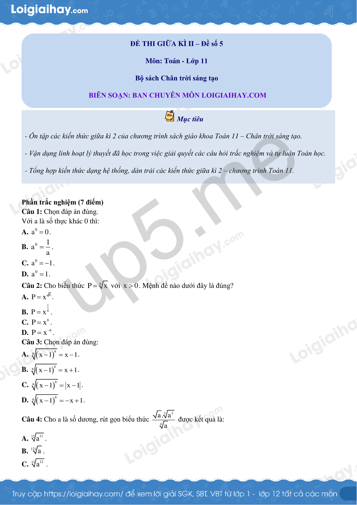 ĐỀ THI GIỮA KÌ II – Đề số 5