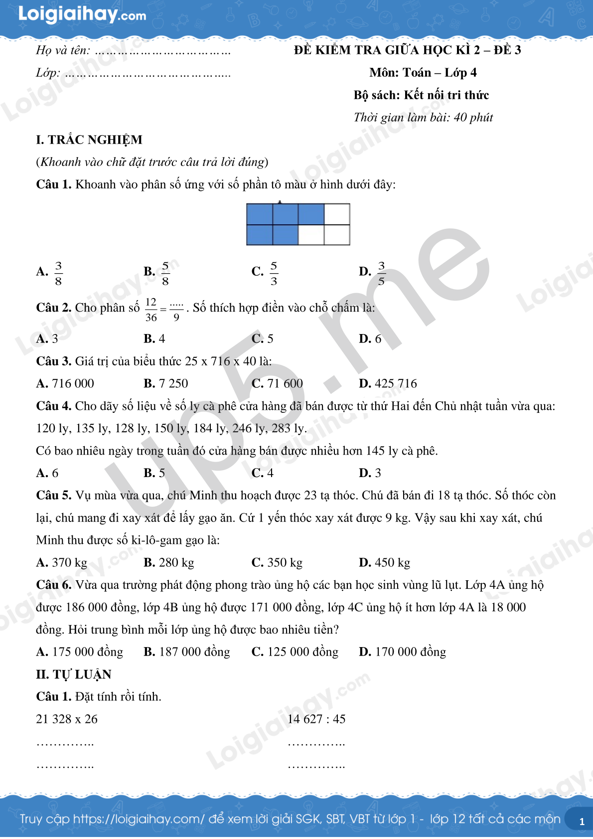 Thời gian làm bài: 40 phút