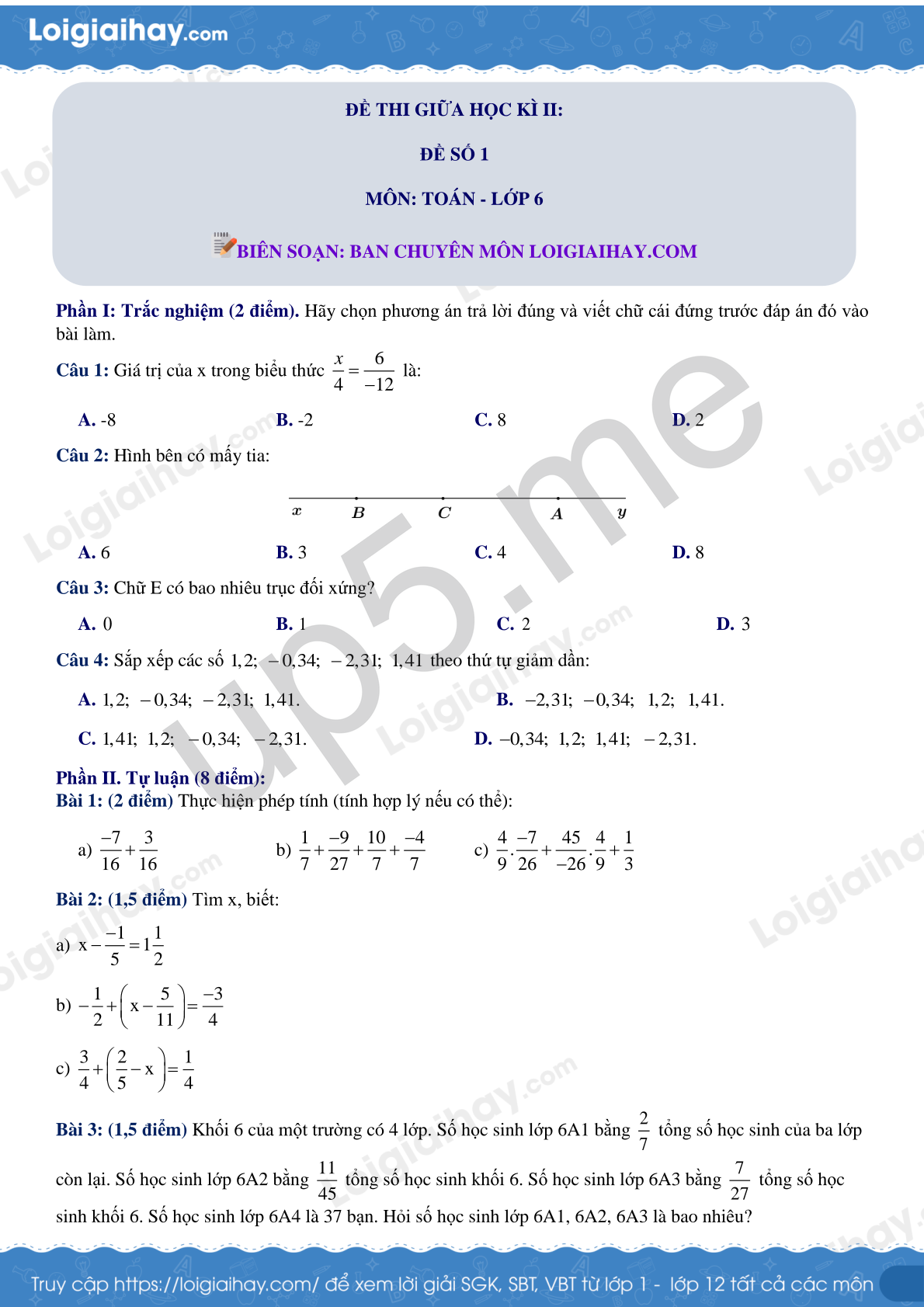 MÔN: TOÁN - LỚP 6