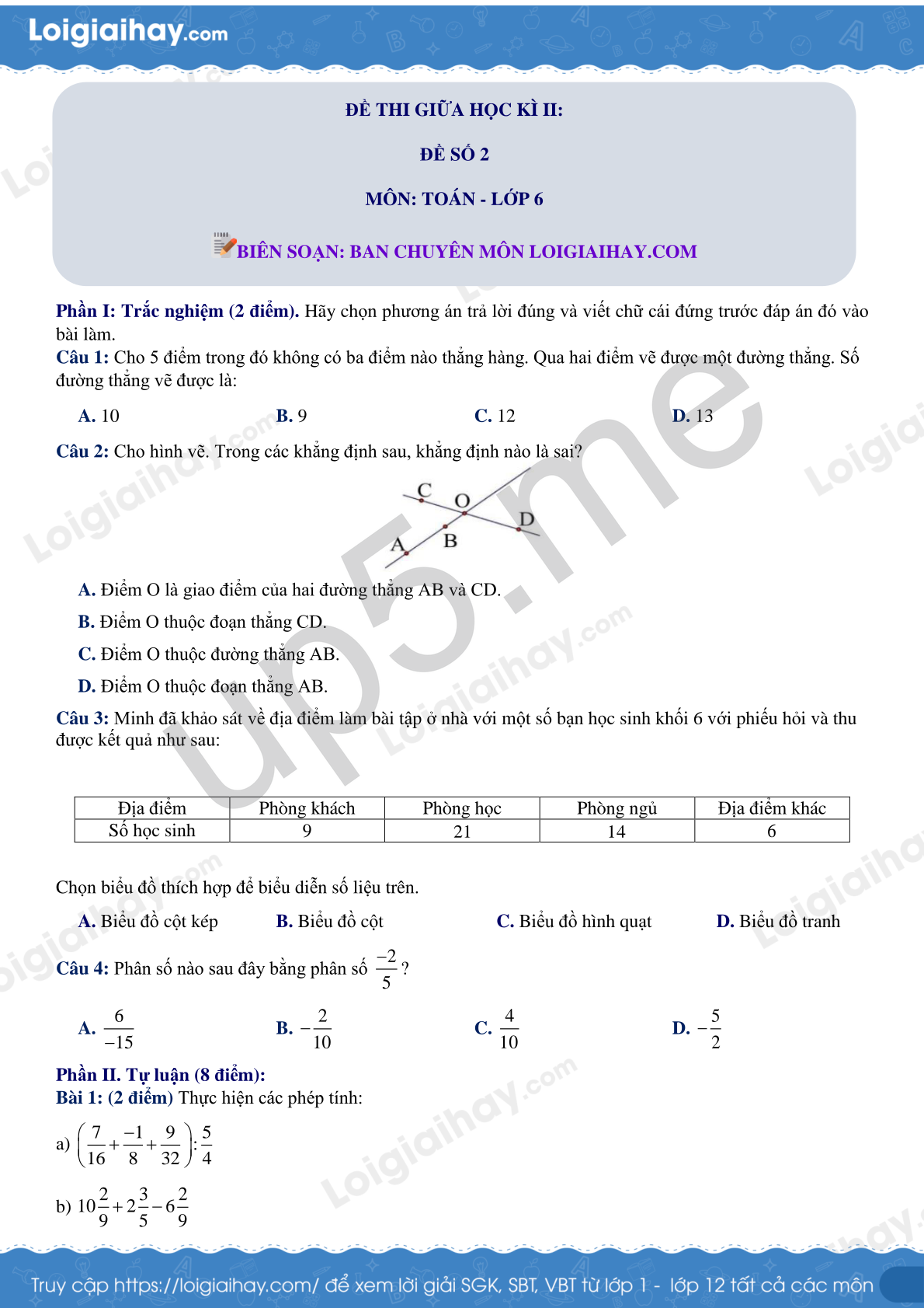 MÔN: TOÁN - LỚP 6