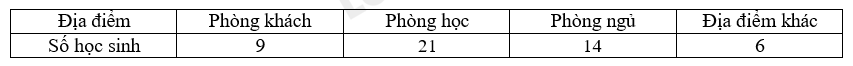Câu 3: Minh đã khảo sát về địa điểm làm bài tập ở nhà với một số bạn học sinh khối 6 với phiếu hỏi và thu được kết quả như sau: