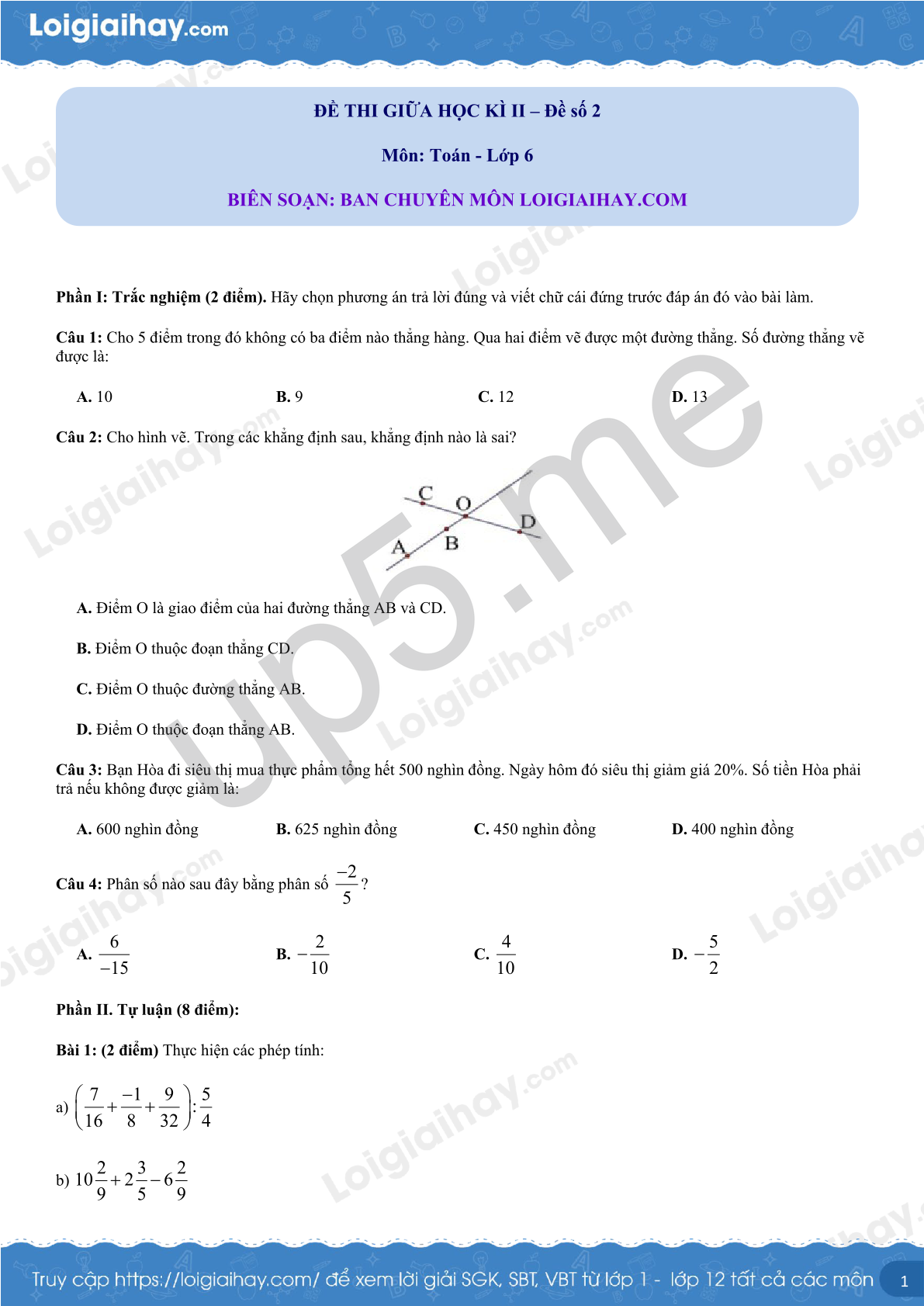 ĐỀ THI GIỮA HỌC KÌ II – Đề số 2