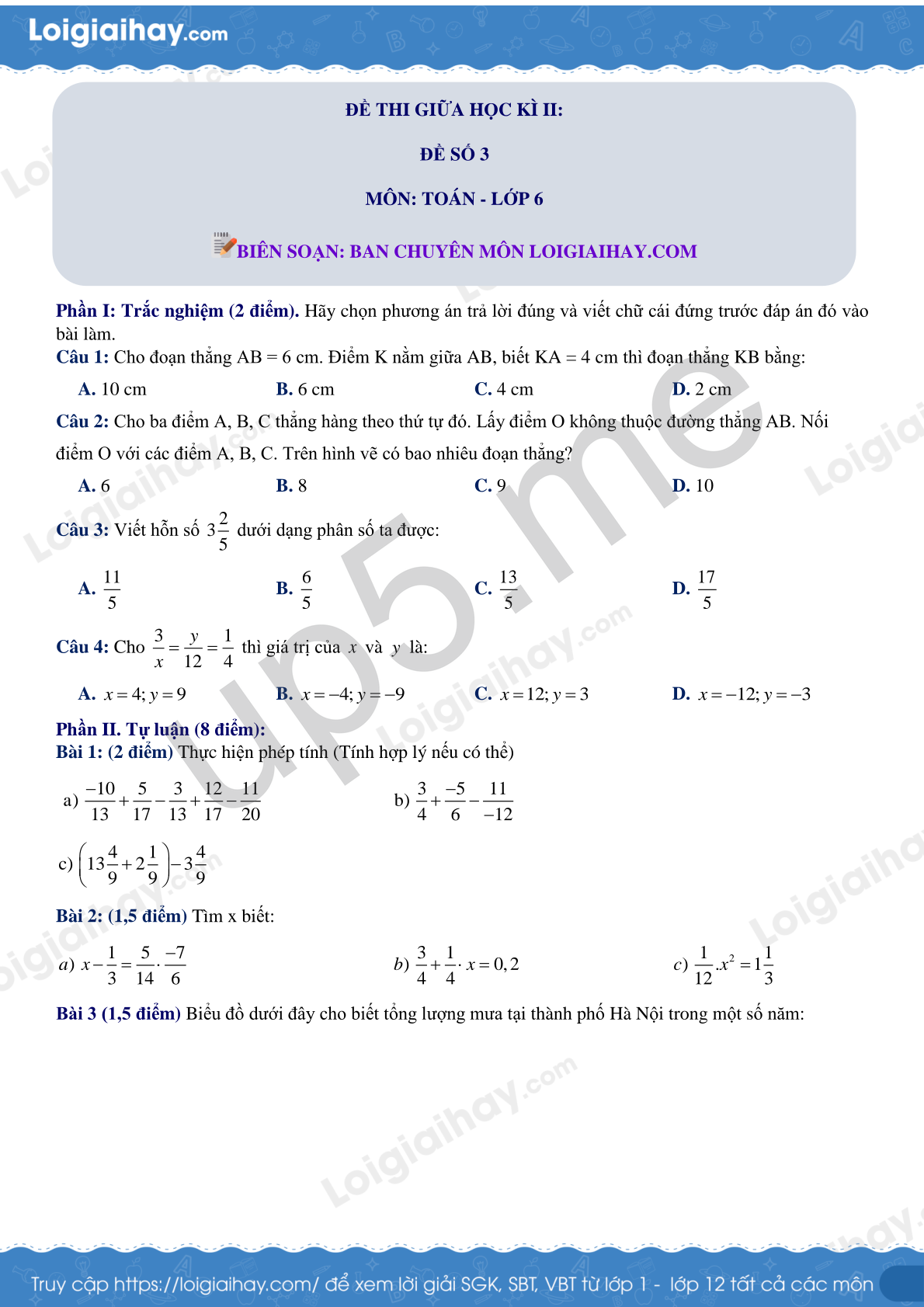 ĐỀ THI GIỮA HỌC KÌ II: ĐỀ SỐ 3