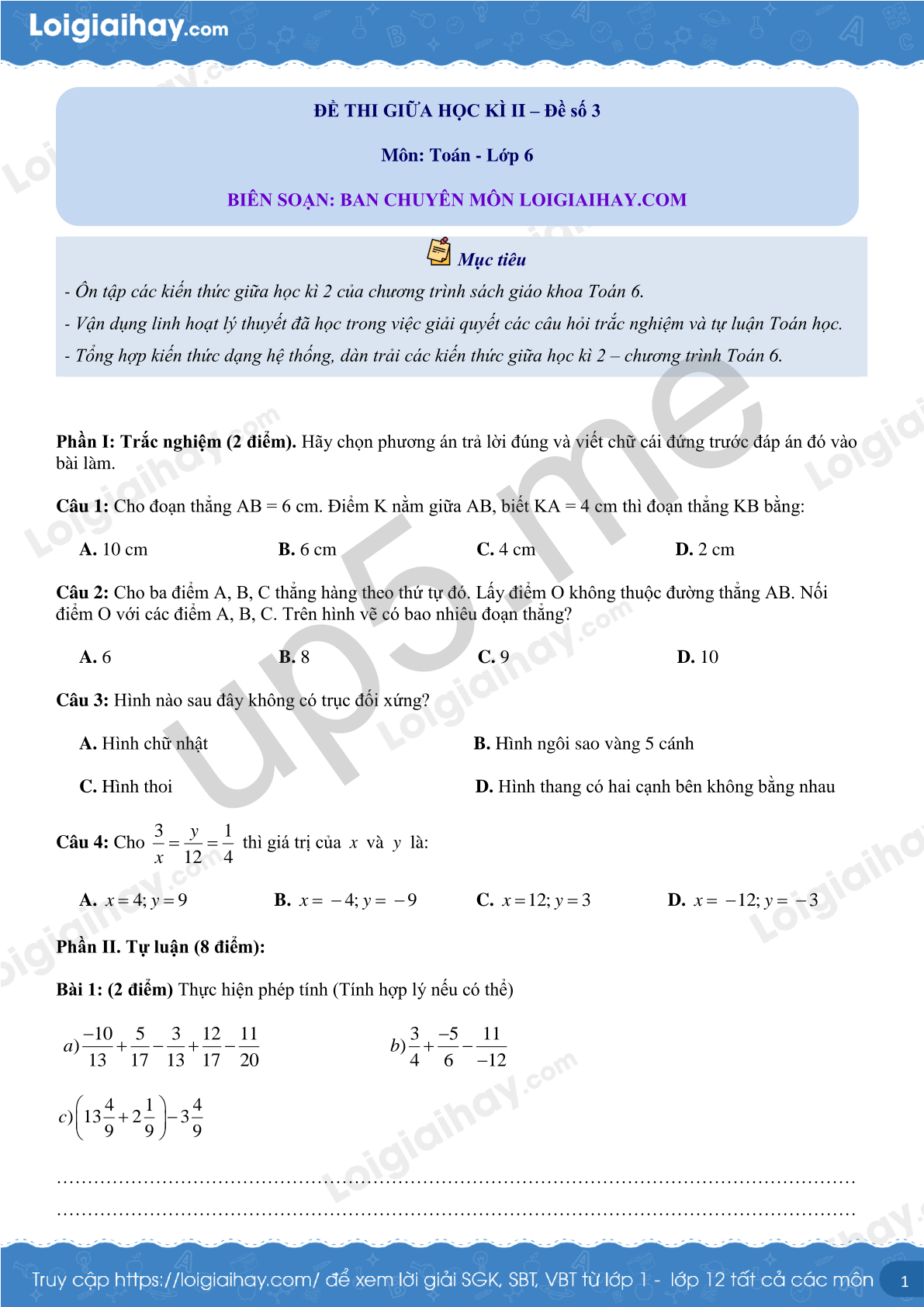 Môn: Toán - Lớp 6
