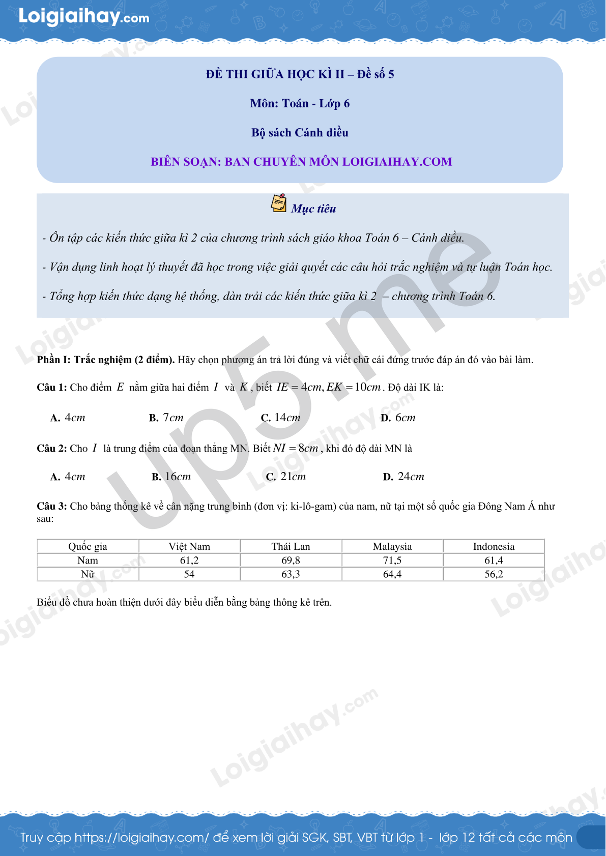 ĐỀ THI GIỮA HỌC KÌ II – Đề số 5