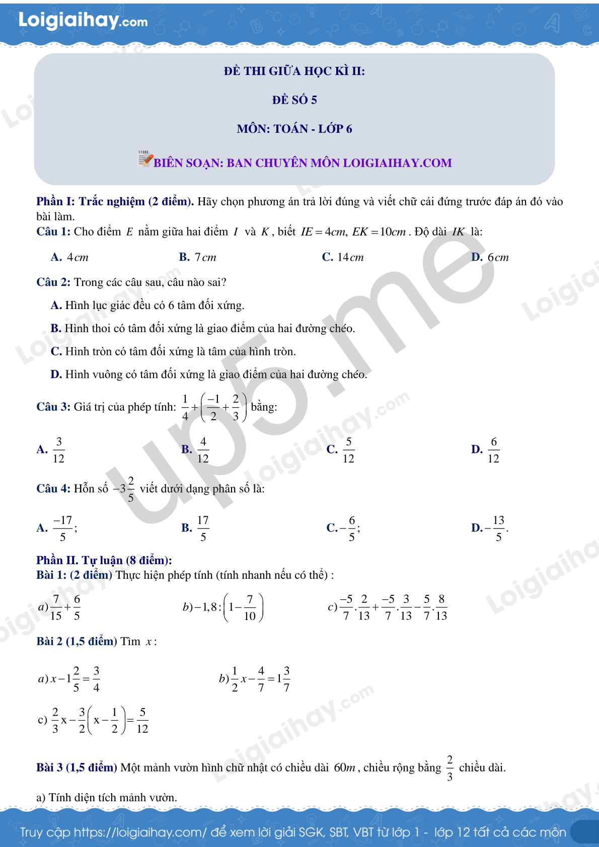 ĐỀ THI GIỮA HỌC KÌ II: ĐỀ SỐ 5