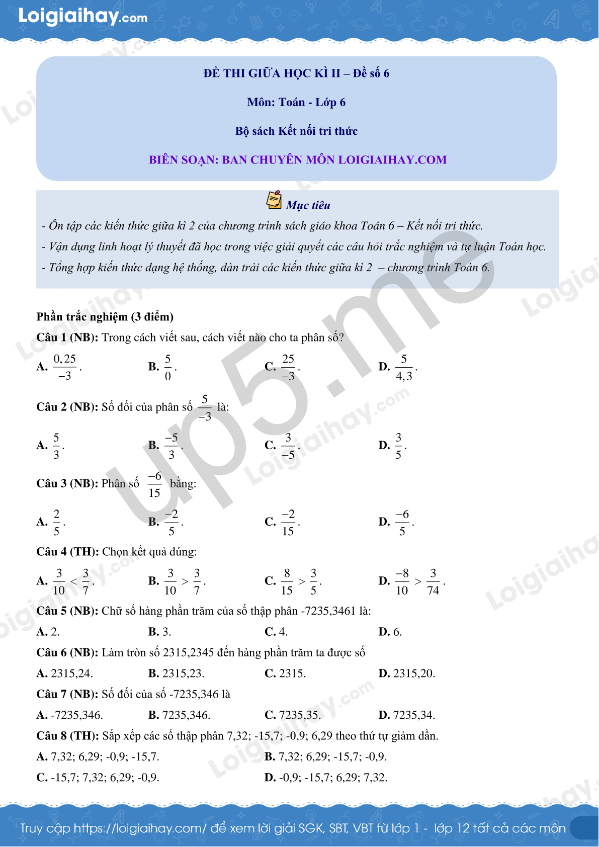 Môn: Toán - Lớp 6