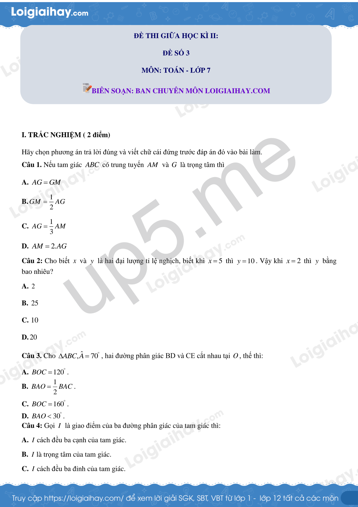 MÔN: TOÁN - LỚP 7