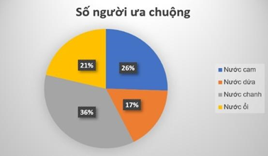 | Loại nước uống | Nước cam | Nước dứa | Nước chanh | Nước ổi |