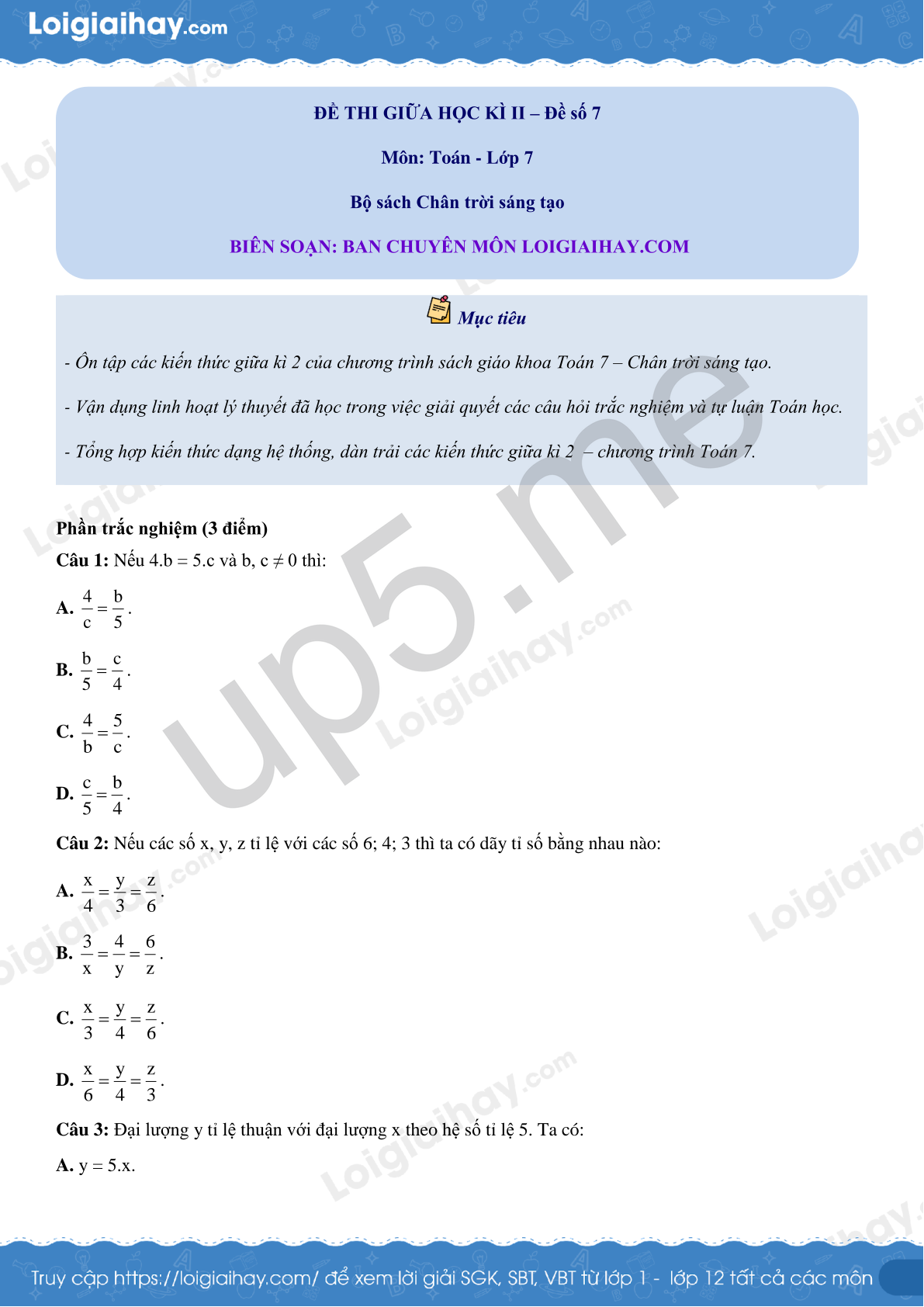 ĐỀ THI GIỮA HỌC KÌ II – Đề số 7