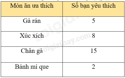 Câu 1: Các món ăn yêu thích của học sinh lớp 8A ghi lại trong bảng sau: