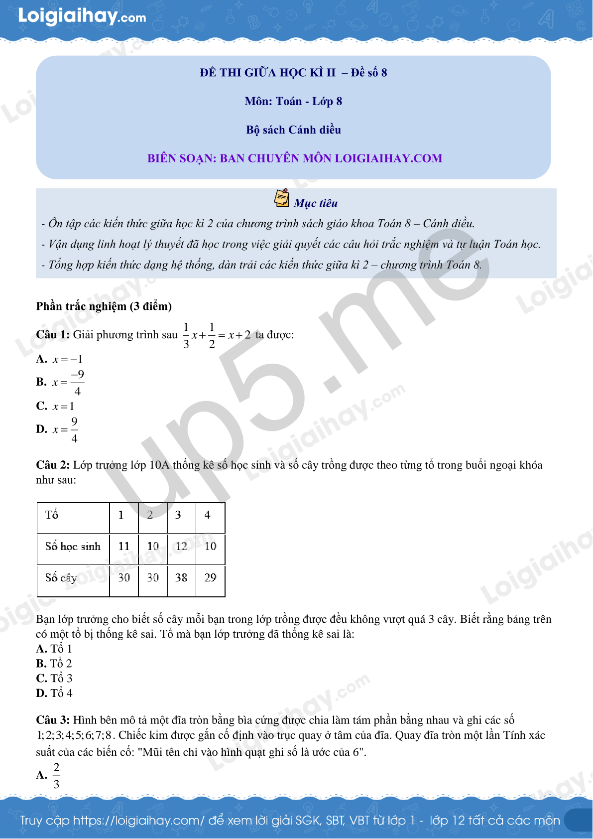 ĐỀ THI GIỮA HỌC KÌ II – Đề số 8