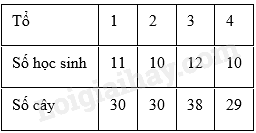 Câu 2: Lớp trưởng lớp 10A thống kê số học sinh và số cây trồng được theo từng tổ trong buổi ngoại khóa như sau: