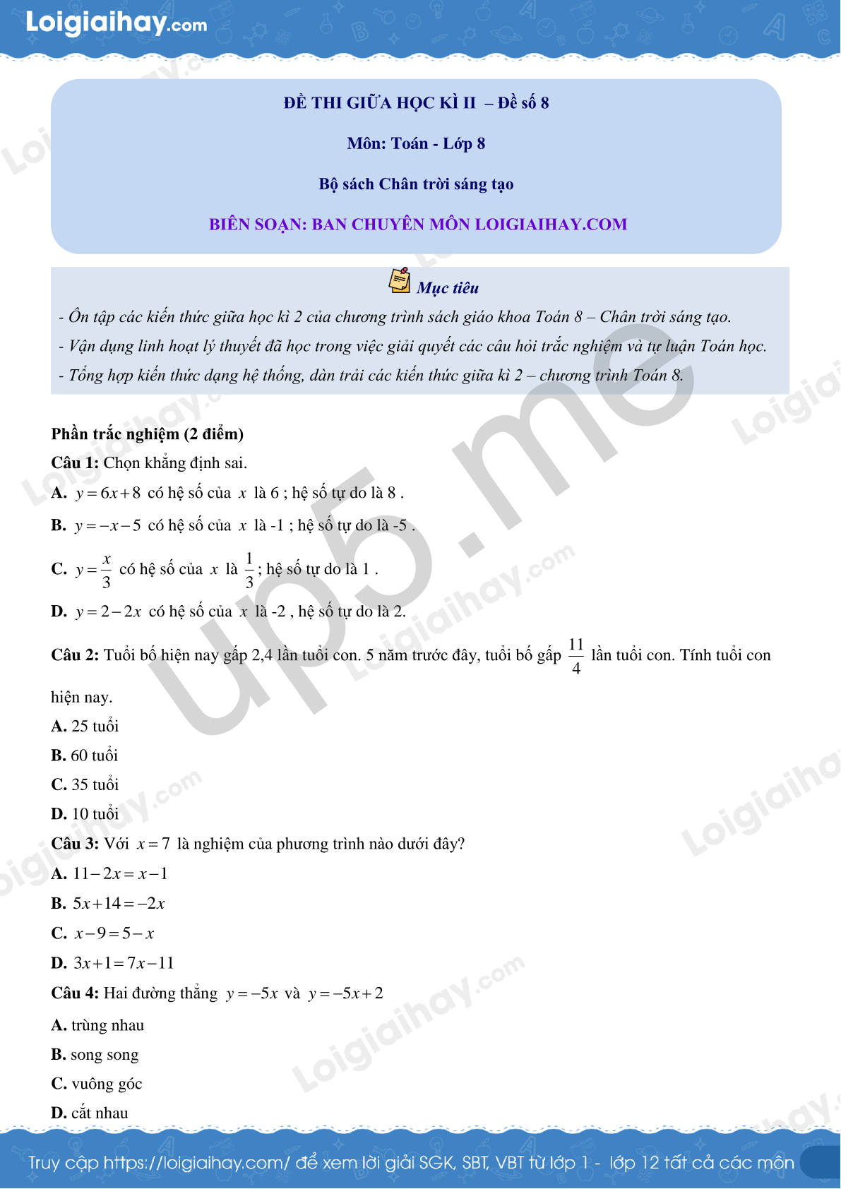ĐỀ THI GIỮA HỌC KÌ II – Đề số 8