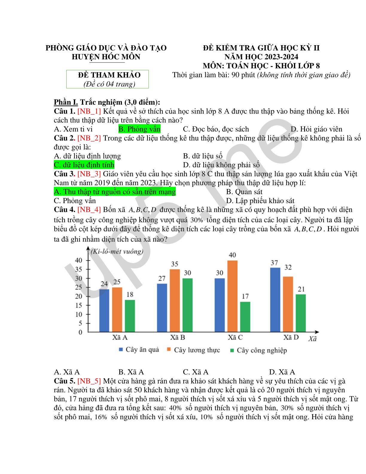 Câu 3. [NB_3] Giáo viên yêu cầu học sinh lớp 8 C thu thập sản lượng lúa gạo xuất khẩu của Việt Nam từ năm 2019 đến năm 2023. Hãy chọn phương pháp thu thập dữ liệu hợp lí: