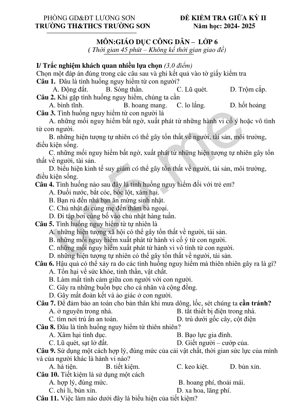 TRƯỜNG TH&THCS TRƯỜNG SƠN Năm học: 2024- 2025