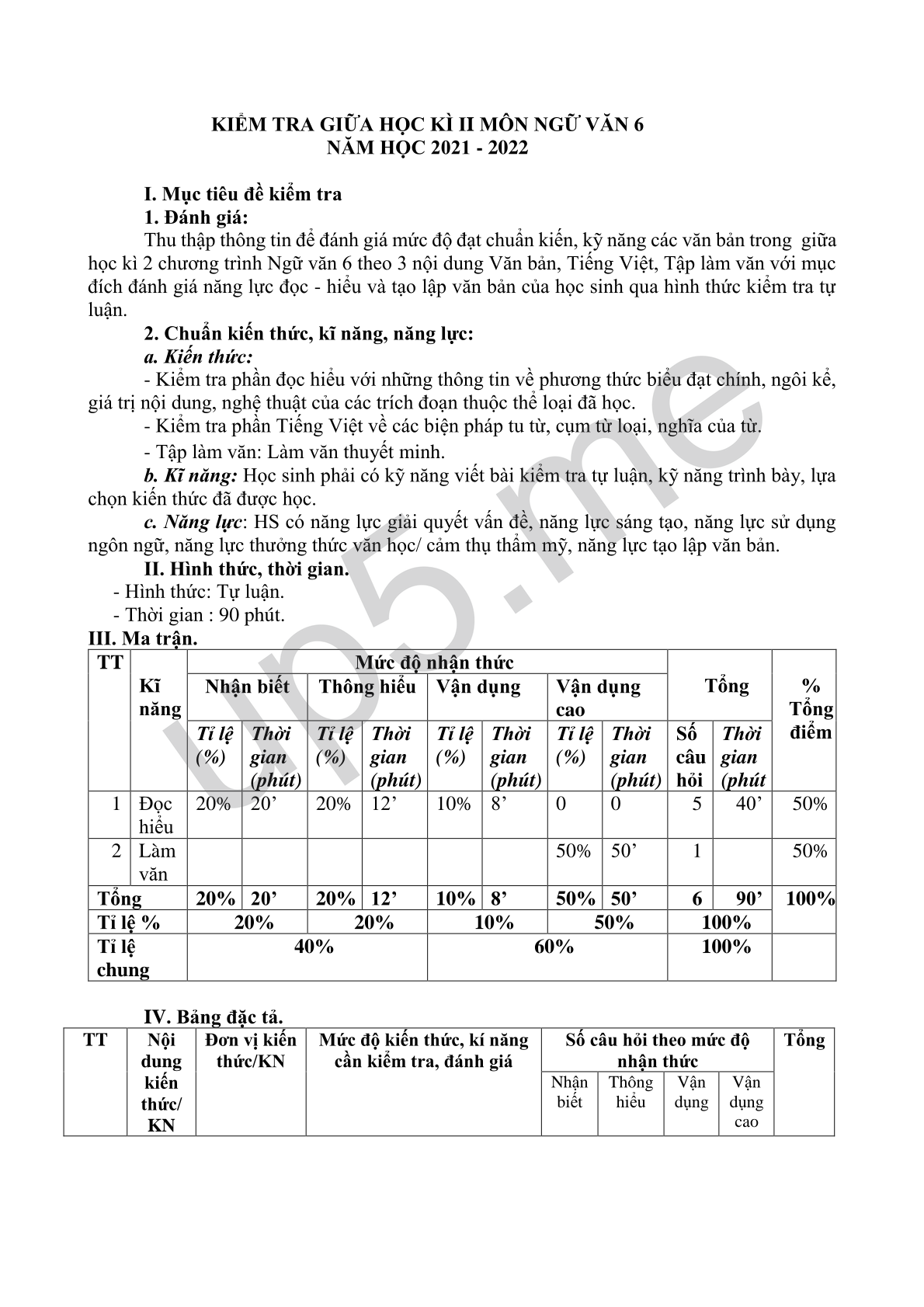 I. Mục tiêu đề kiểm tra