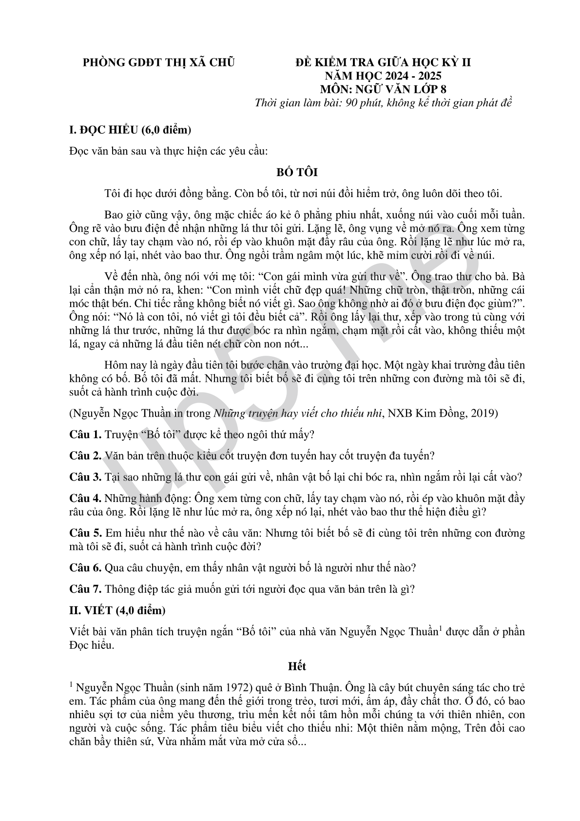 ĐỀ KIỂM TRA GIỮA HỌC KỲ IINĂM HỌC 2024 - 2025MÔN: NGỮ VĂN LỚP 8Thời gian làm bài: 90 phút, không kể thời gian phát đề |