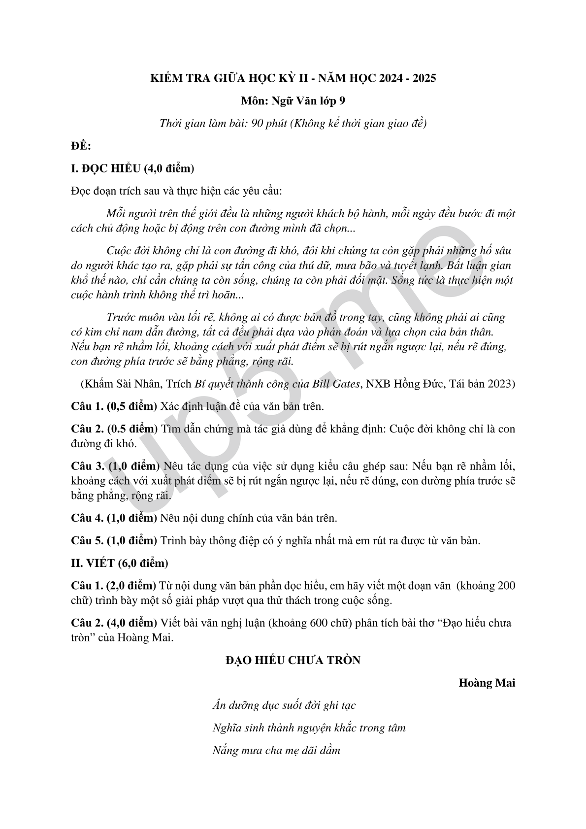 KIỂM TRA GIỮA HỌC KỲ II - NĂM HỌC 2024 - 2025