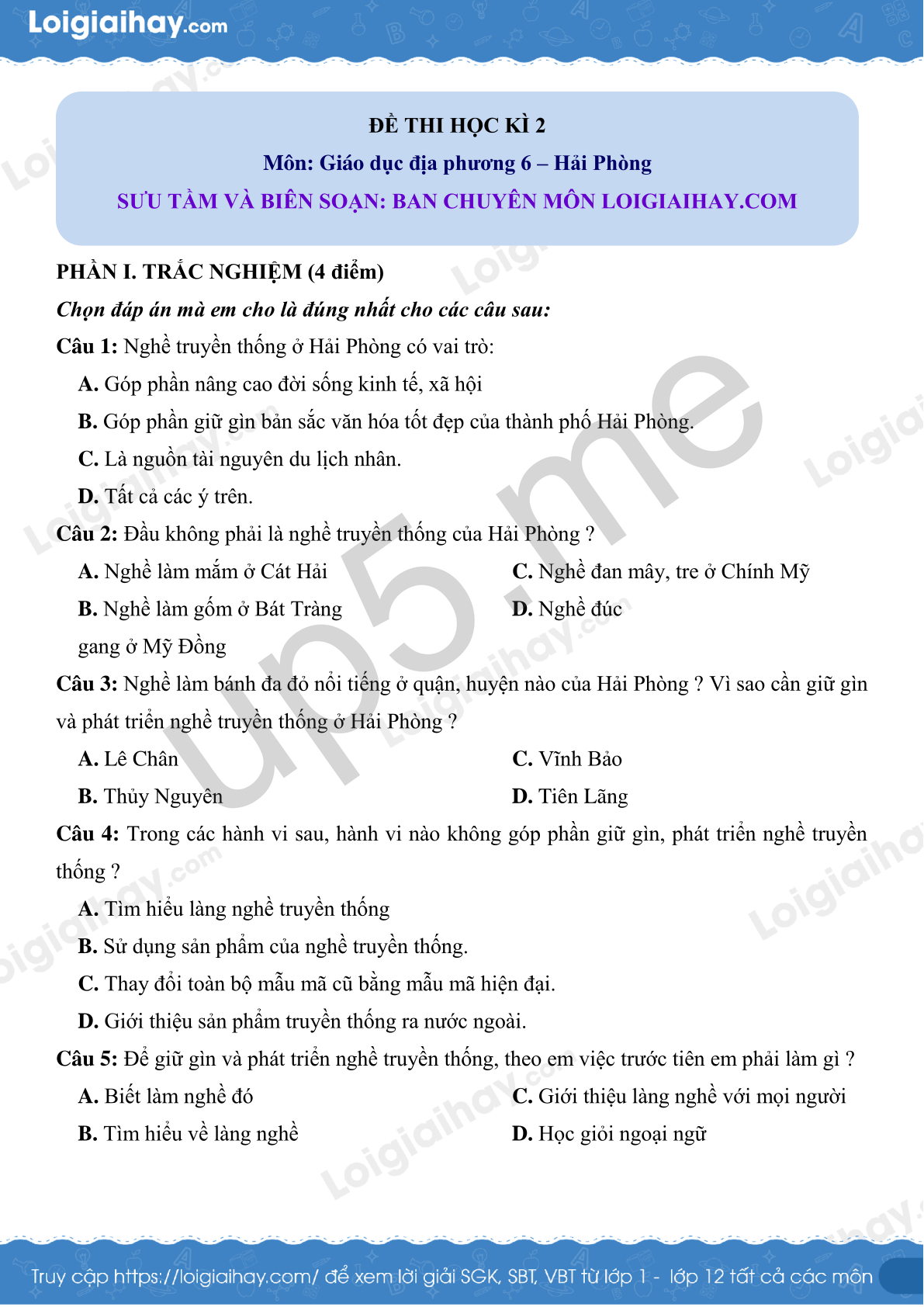 Môn: Giáo dục địa phương 6 – Hải Phòng