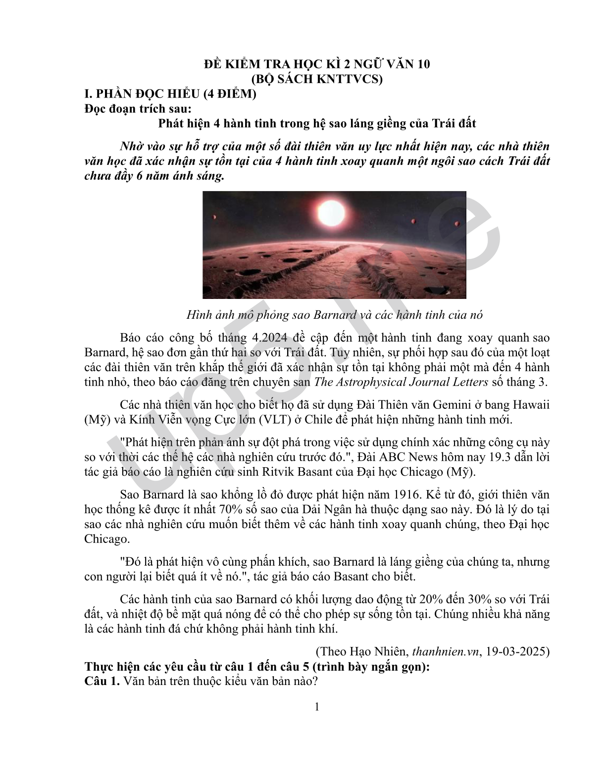 Báo cáo công bố tháng 4.2024 đề cập đến một hành tinh đang xoay quanh sao Barnard, hệ sao đơn gần thứ hai so với Trái đất. Tuy nhiên, sự phối hợp sau đó của một loạt các đài thiên văn trên khắp thế giới đã xác nhận sự tồn tại không phải một mà đến 4 hành tinh nhỏ, theo báo cáo đăng trên chuyên san The Astrophysical Journal Letters số tháng 3.