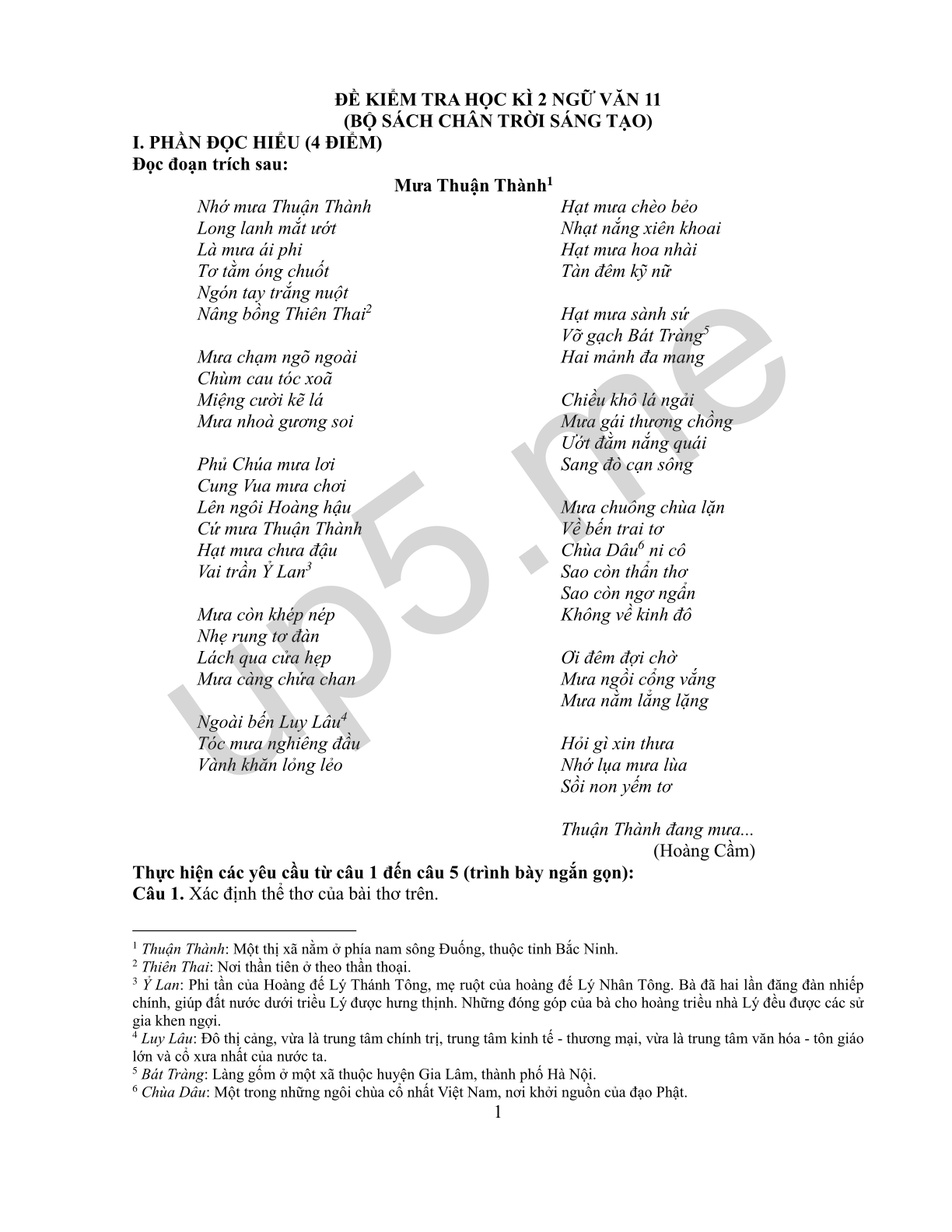 ĐỀ KIỂM TRA HỌC KÌ 2 NGỮ VĂN 11