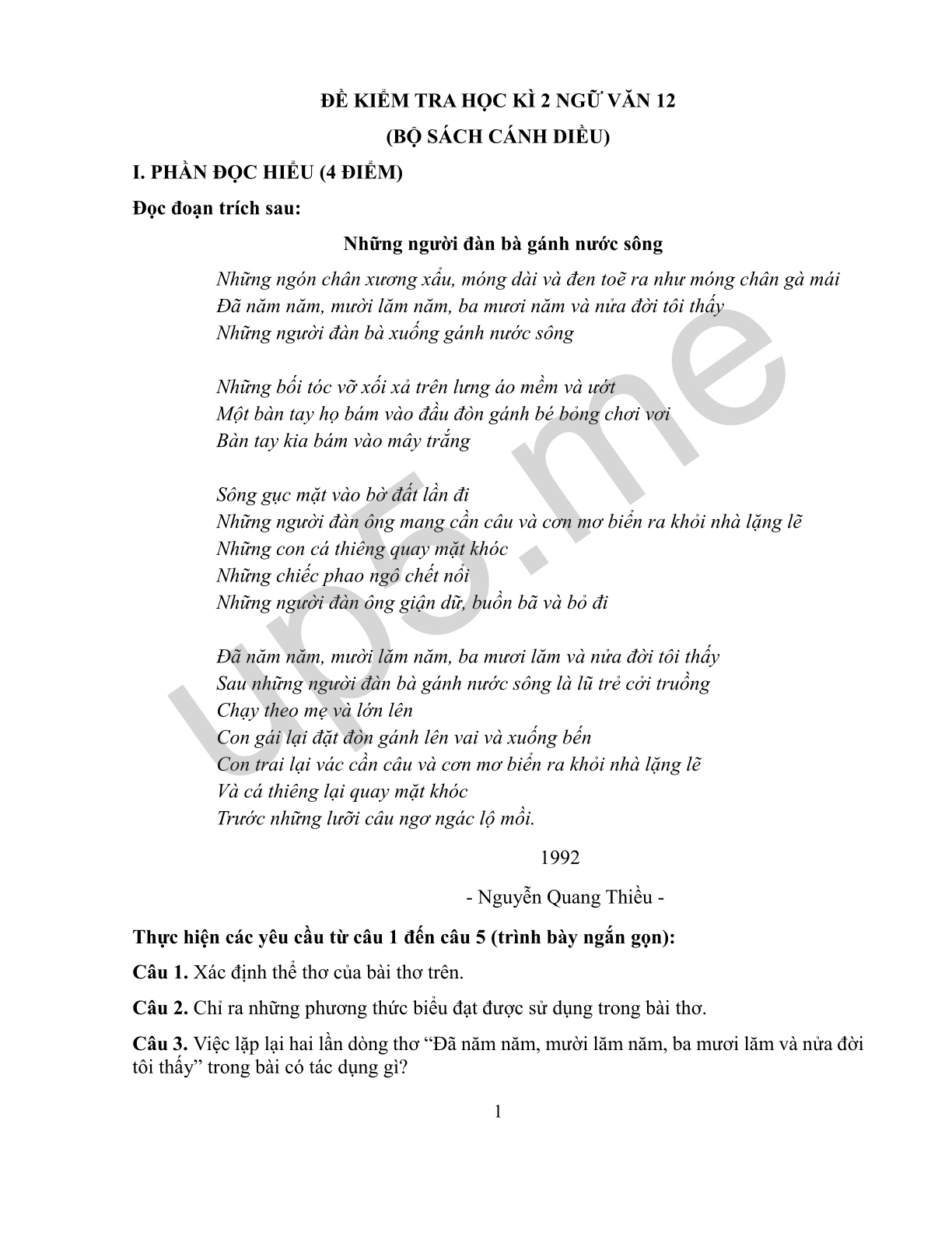 I. PHẦN ĐỌC HIỂU (4 ĐIỂM)