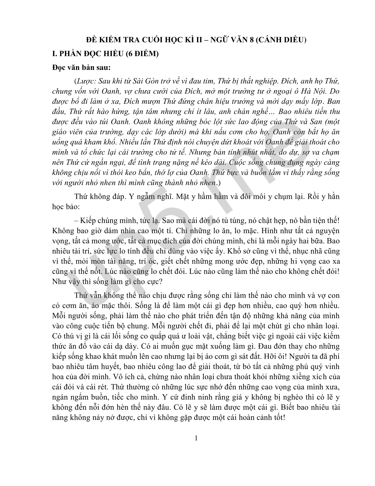 ĐỀ KIỂM TRA CUỐI HỌC KÌ II – NGỮ VĂN 8 (CÁNH DIỀU)