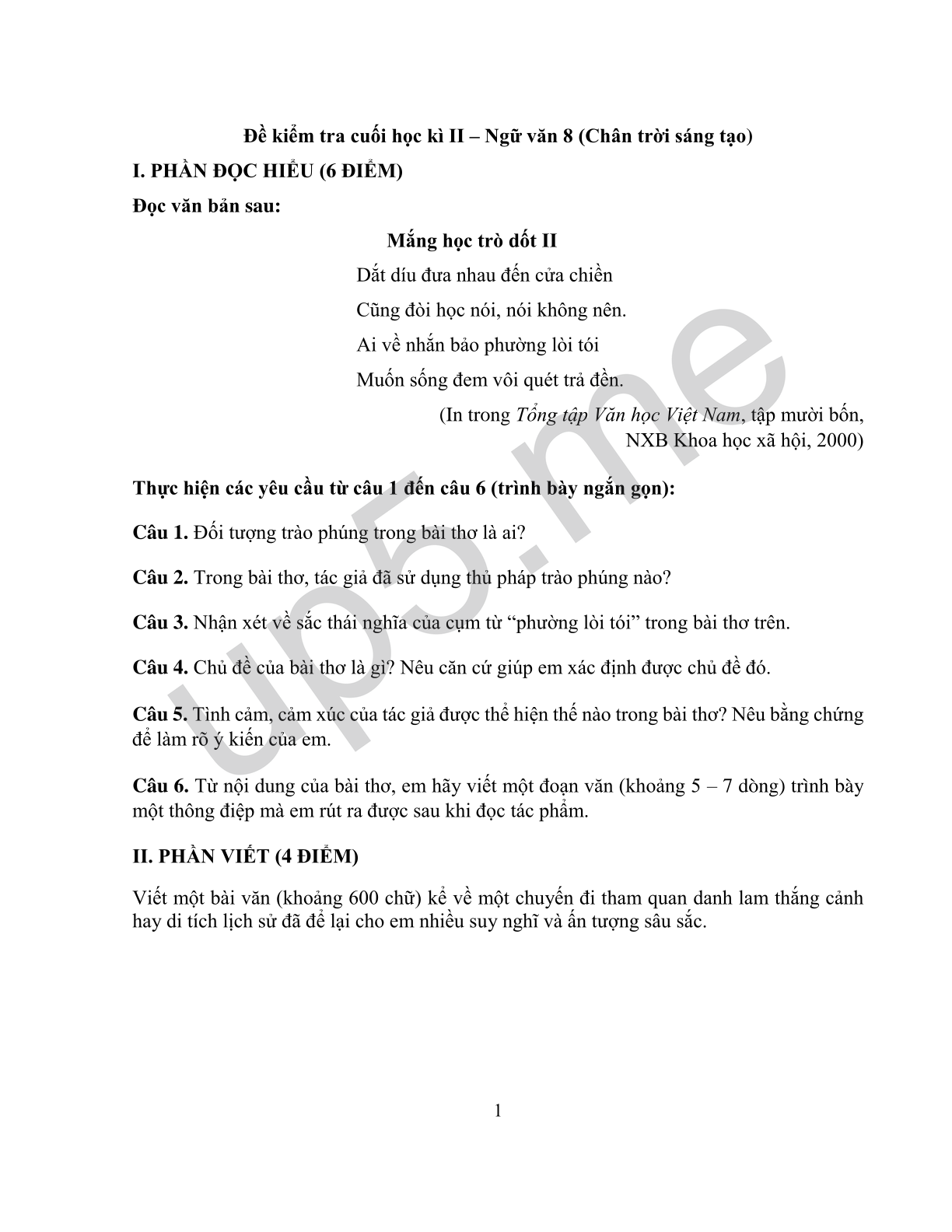 Câu 1. Đối tượng trào phúng trong bài thơ là ai?