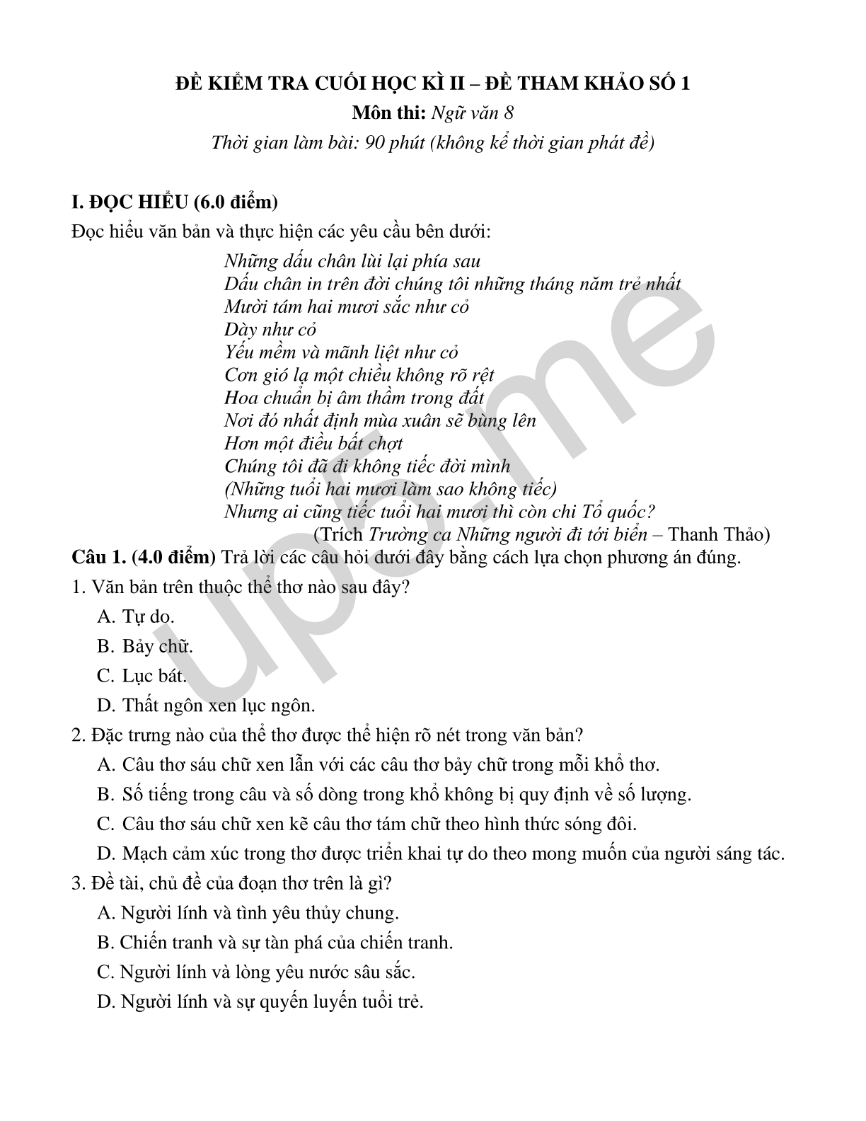 | Môn thi: Ngữ văn 8Thời gian làm bài: 90 phút (không kể thời gian phát đề) |