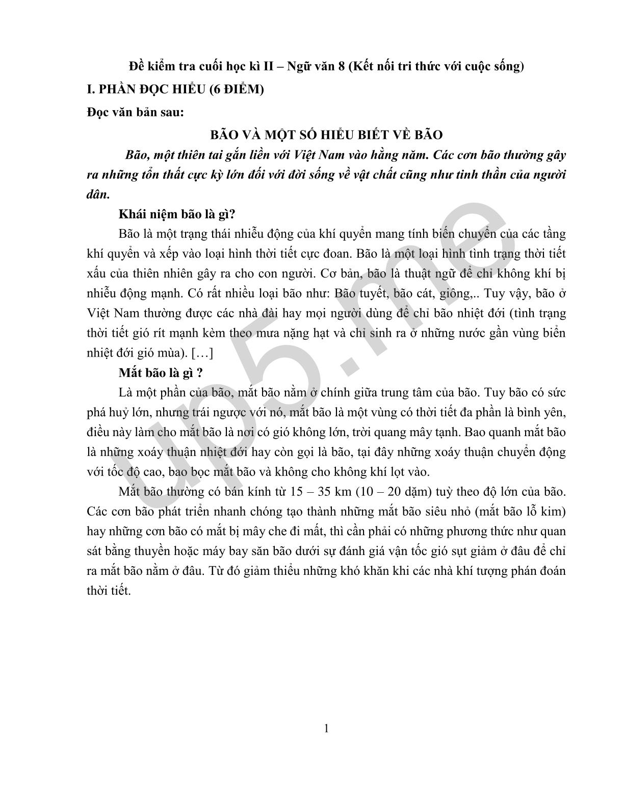 Đề kiểm tra cuối học kì II – Ngữ văn 8 (Kết nối tri thức với cuộc sống)