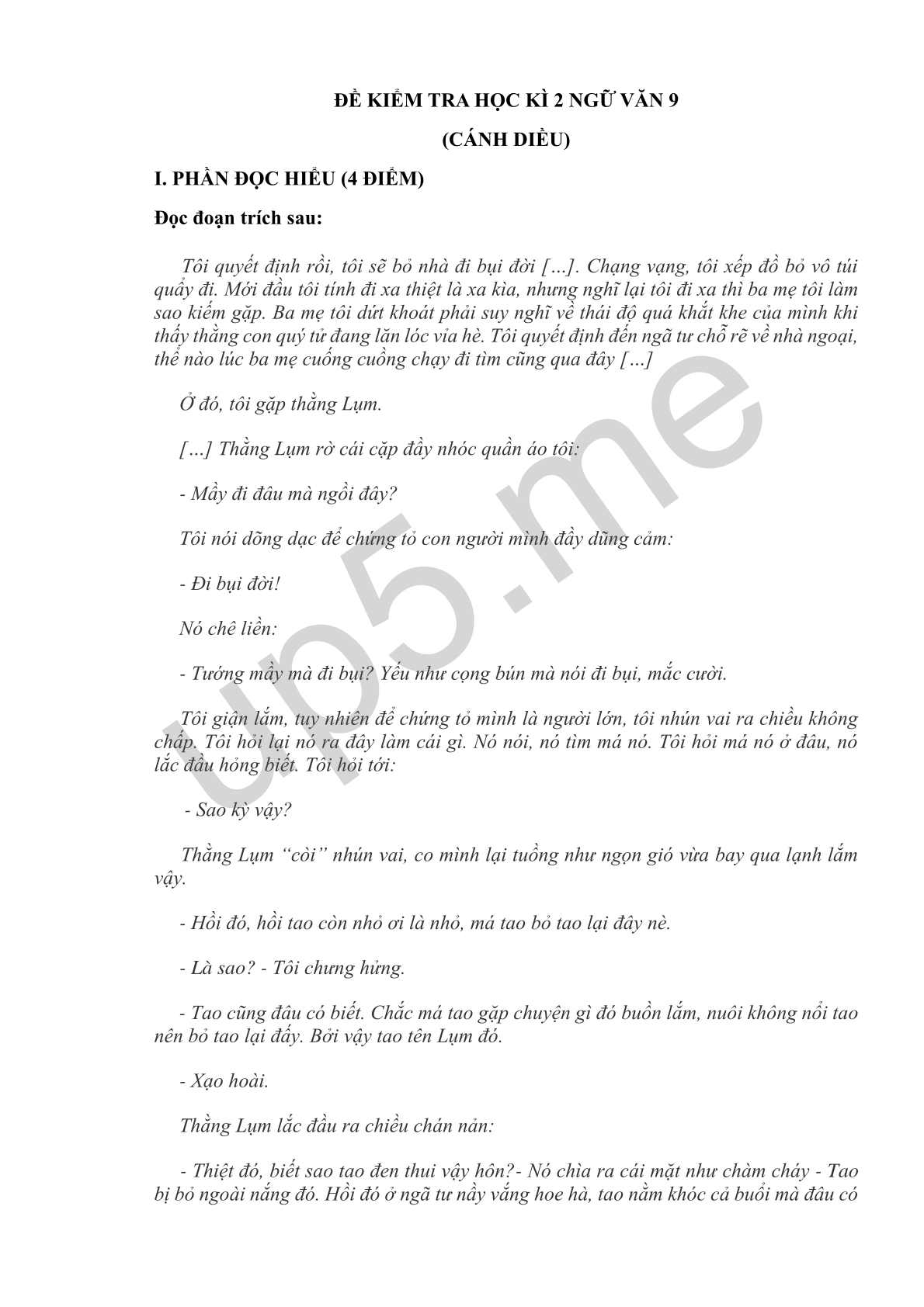 I. PHẦN ĐỌC HIỂU (4 ĐIỂM)