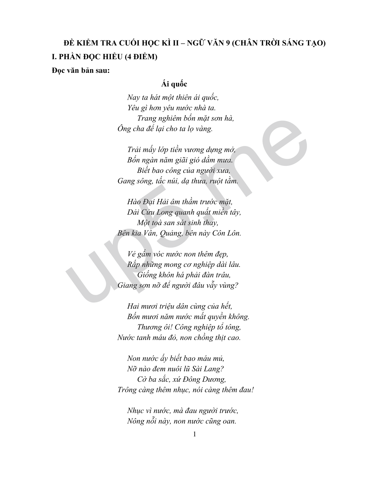 I. PHẦN ĐỌC HIỂU (4 ĐIỂM)