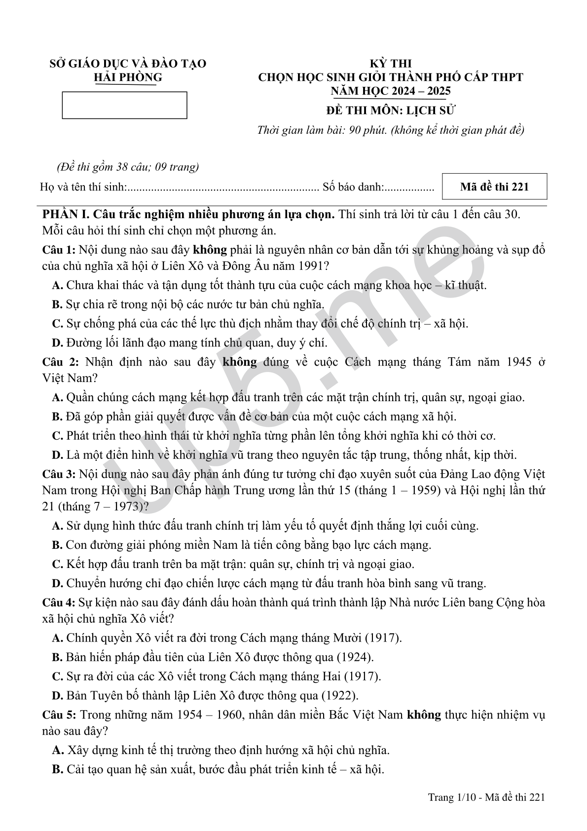 Mã đề thi 221 |