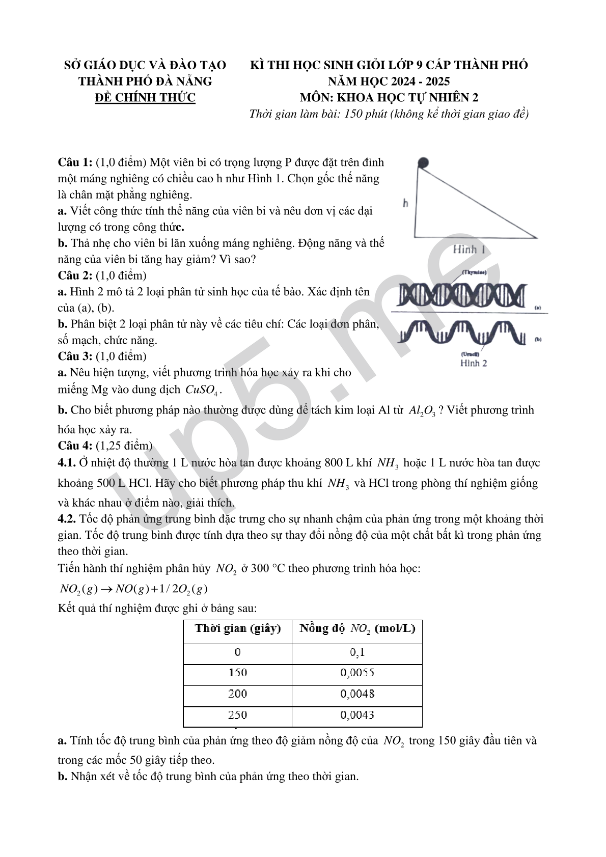 KÌ THI HỌC SINH GIỎI LỚP 9 CẤP THÀNH PHỐ NĂM HỌC 2024 - 2025 MÔN: KHOA HỌC TỰ NHIÊN 2 Thời gian làm bài: 150 phút (không kể thời gian giao đề) |