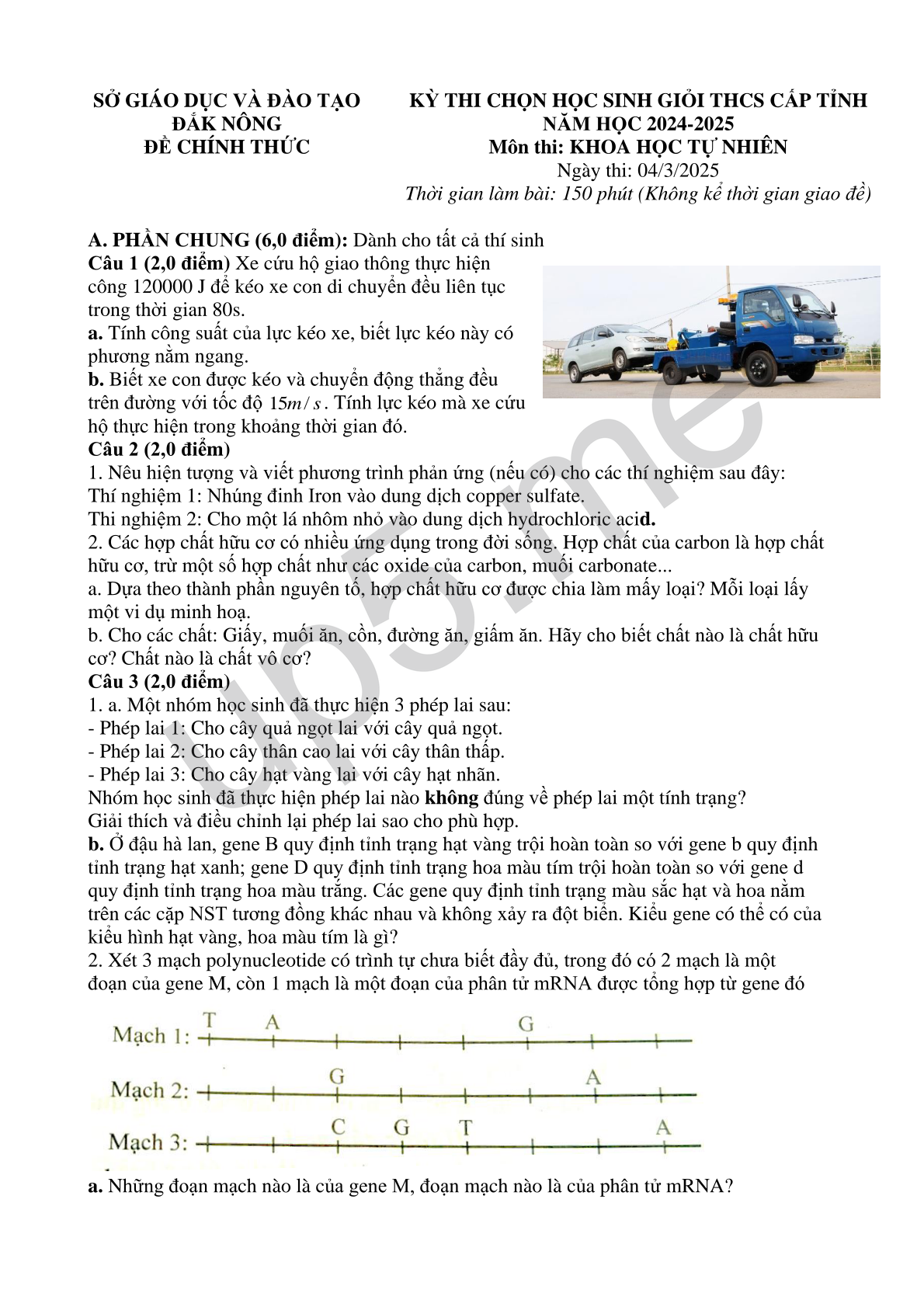 | SỞ GIÁO DỤC VÀ ĐÀO TẠOĐẮK NÔNGĐỀ CHÍNH THỨC | KỲ THI CHỌN HỌC SINH GIỎI THCS CẤP TỈNHNĂM HỌC 2024-2025Môn thi: KHOA HỌC TỰ NHIÊNNgày thi: 04/3/2025Thời gian làm bài: 150 phút (Không kể thời gian giao đề) |