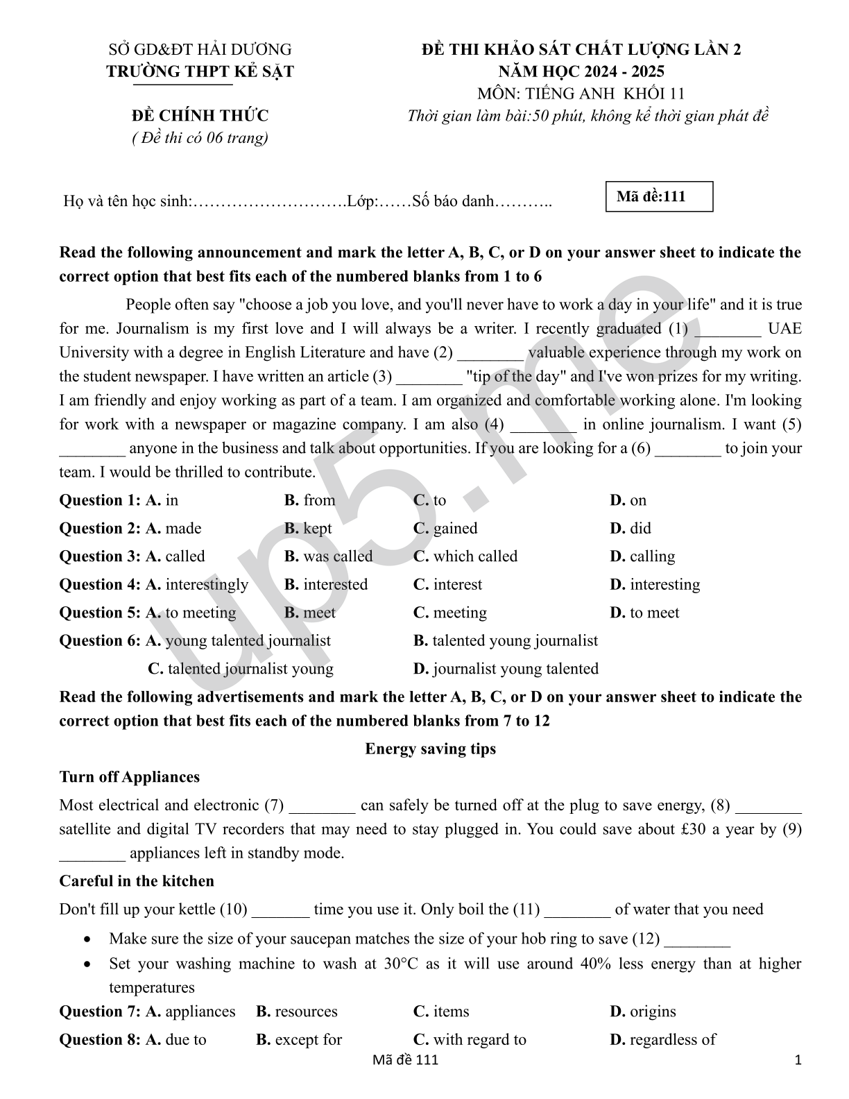 Mã đề:111