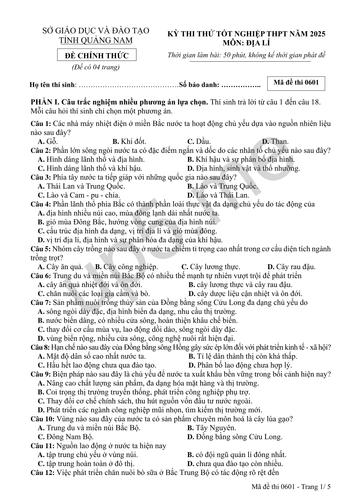 KỲ THI THỬ TỐT NGHIỆP THPT NĂM 2025 MÔN: ĐỊA LÍThời gian làm bài: 50 phút, không kể thời gian phát đề |