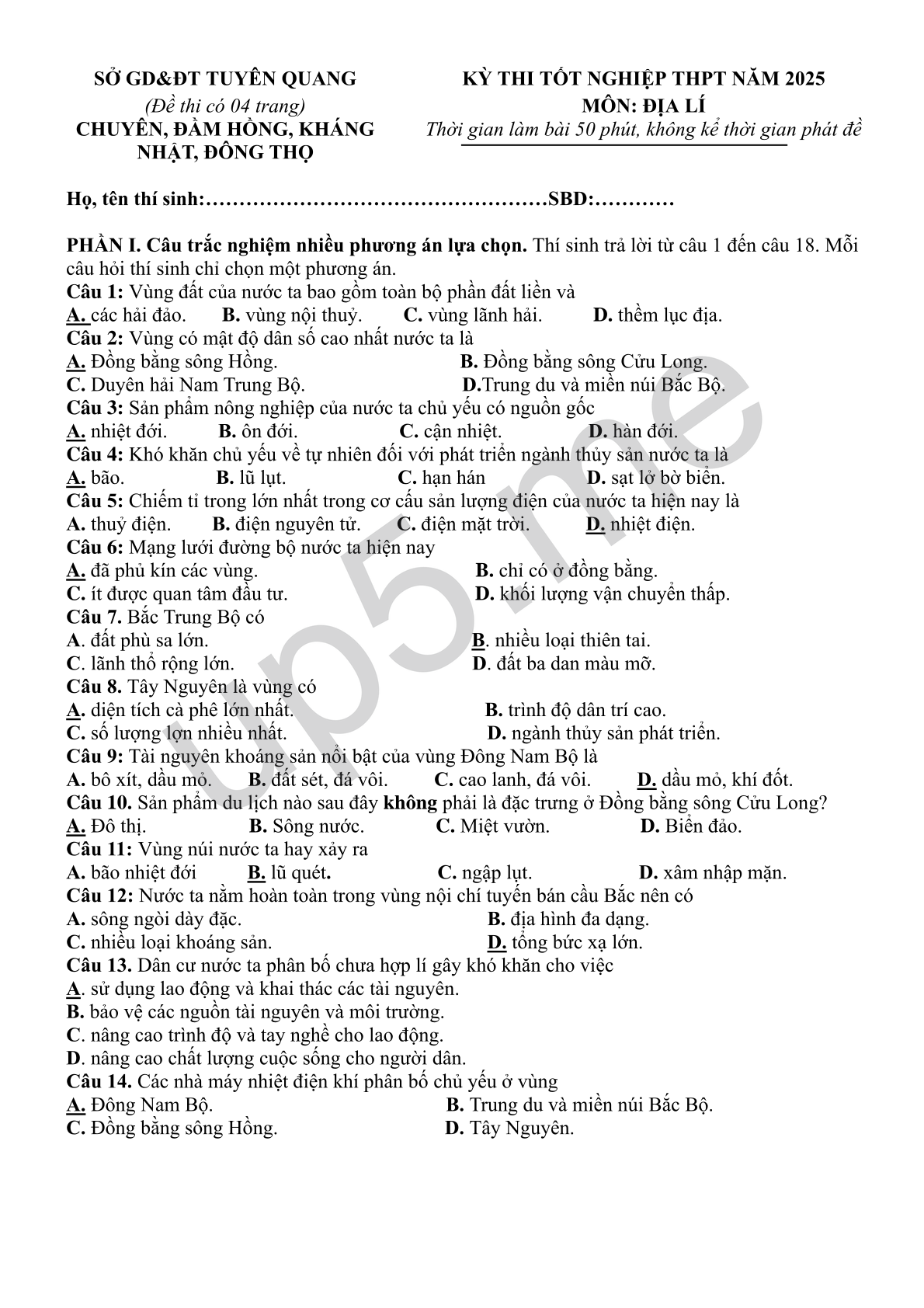 | SỞ GD&ĐT TUYÊN QUANG | KỲ THI TỐT NGHIỆP THPT NĂM 2025 |