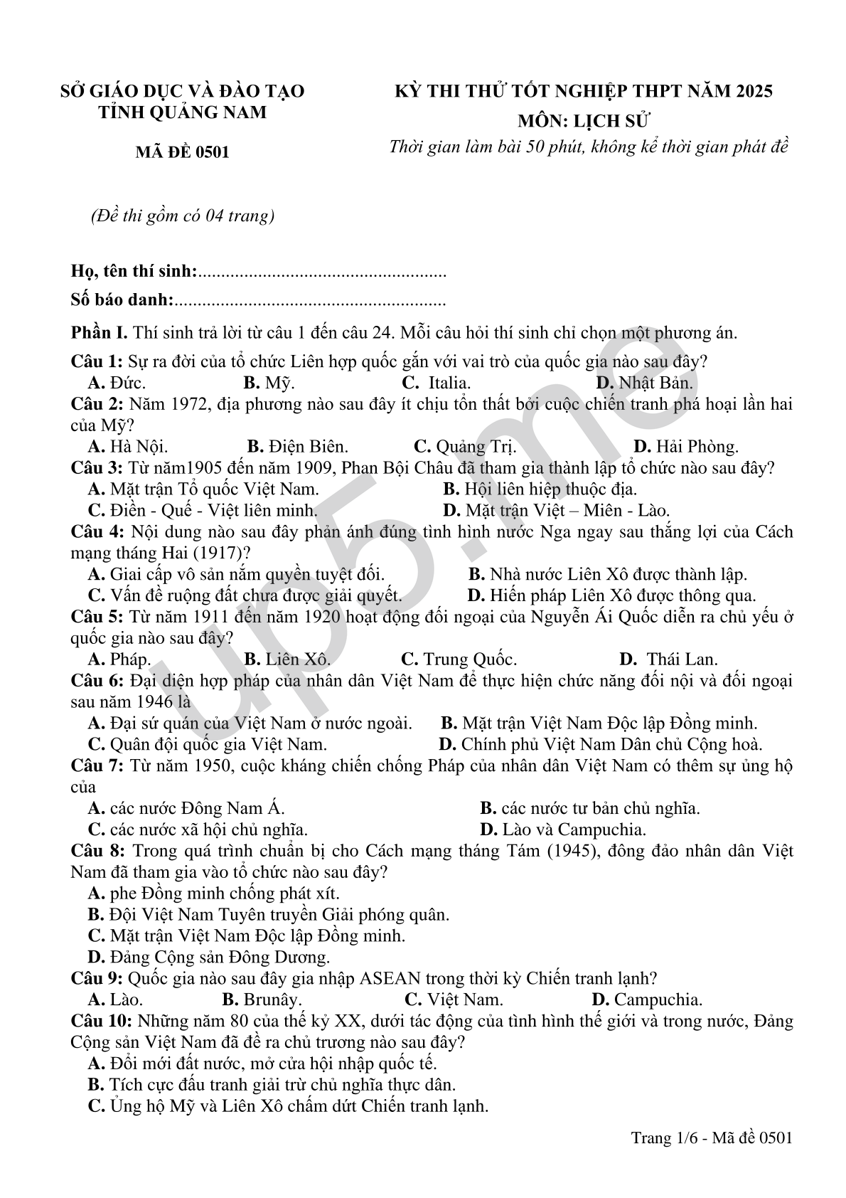 MÃ ĐỀ 0501