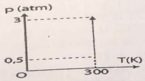 Câu 4. Cho một lượng khí không đổi thực hiện một quá trình biến đổi như hình vẽ. Biết rằng ban đầu khối khí có thể tích 6 lít, áp suất là 0,5 atm. Khi bị nén đến áp suất 3 atm thì thể tích của khối khí là