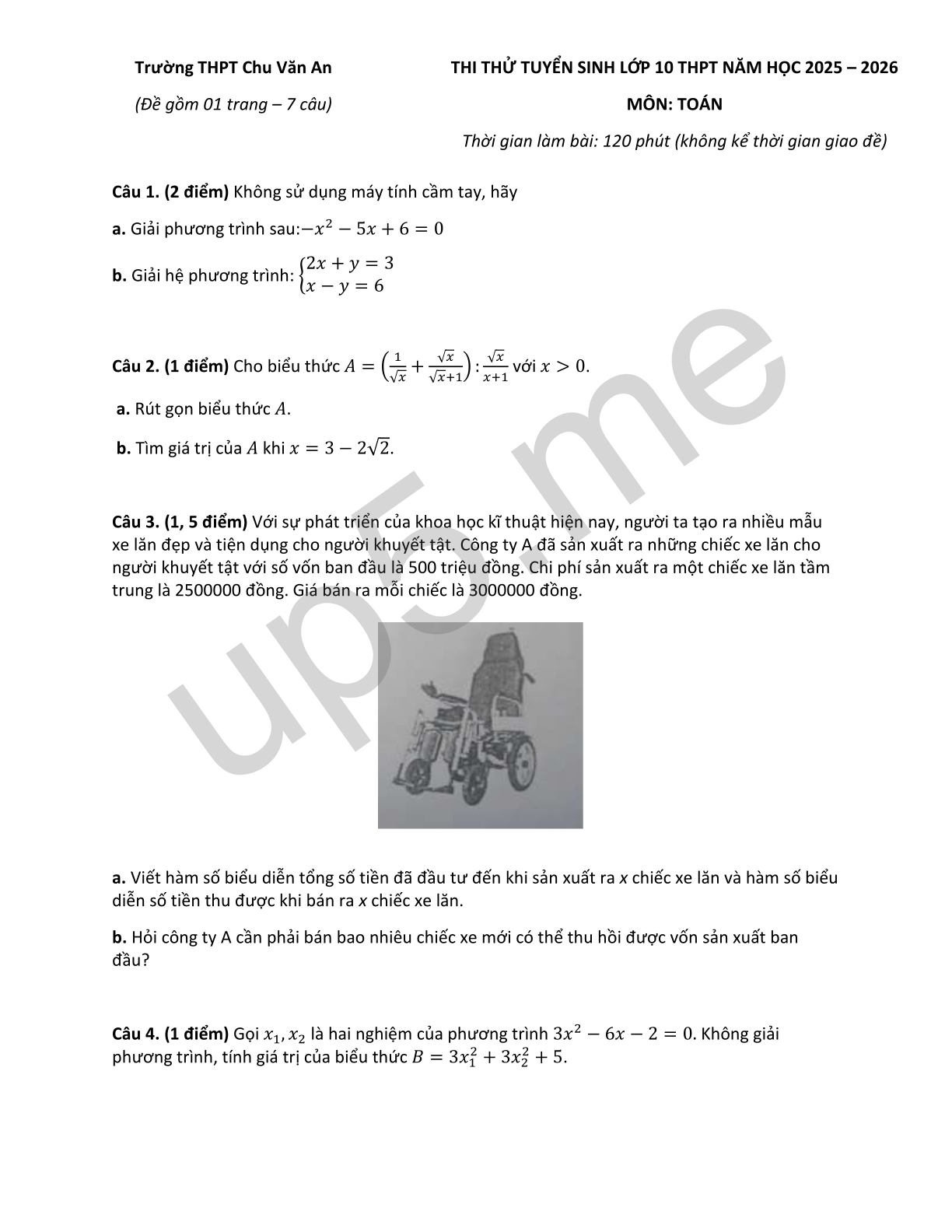 Trường THPT Chu Văn An (Đề gồm 01 trang – 7 câu) |