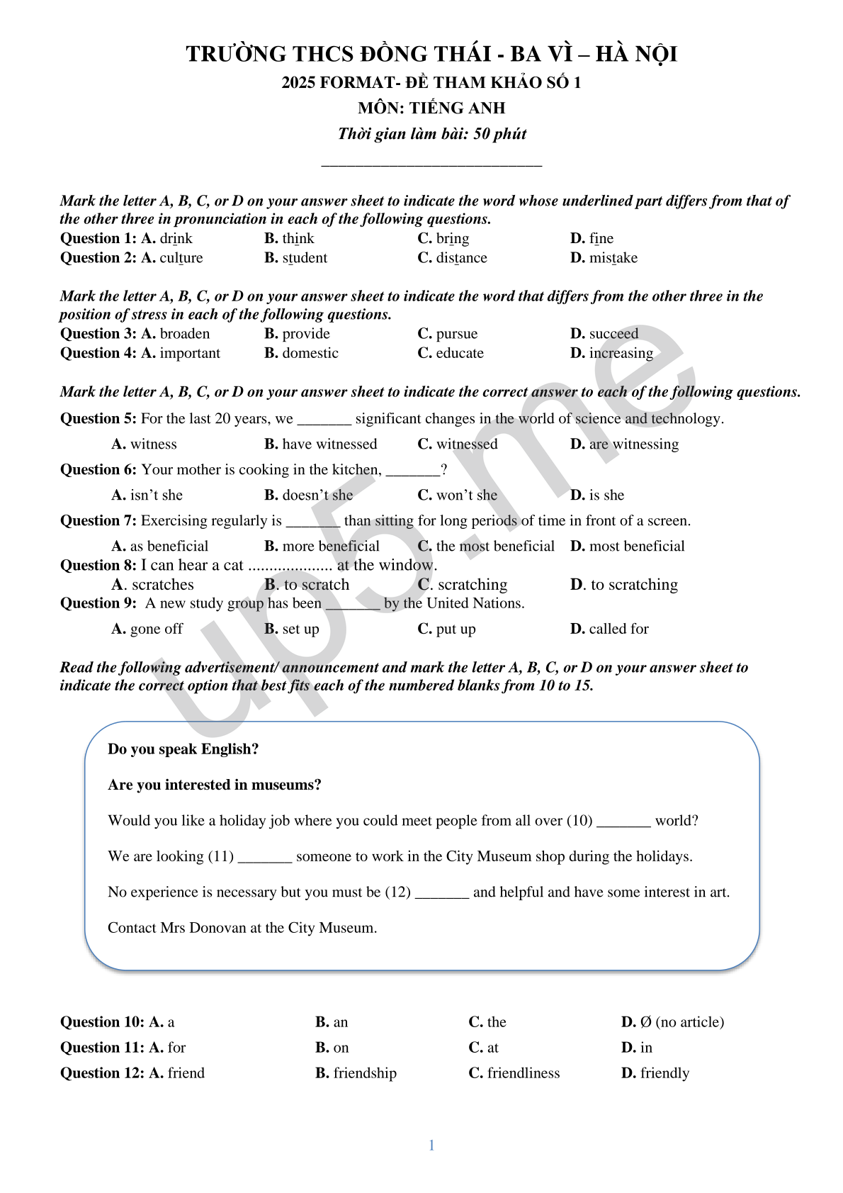 2025 FORMAT- ĐỀ THAM KHẢO SỐ 1