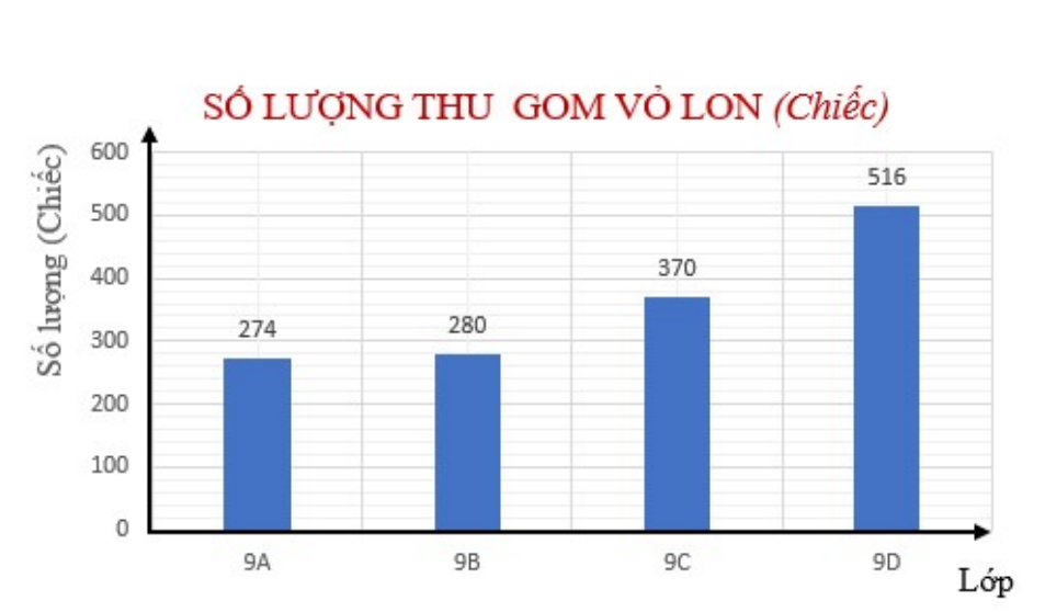 Câu 1: Trong đợt thi đua thu gom kế hoạch nhỏ do Liên đội phát động dịp tết Ất Tỵ 2025, số vỏ lon các lớp khối 9 của một trường THCS được biểu diễn trên biểu đồ: