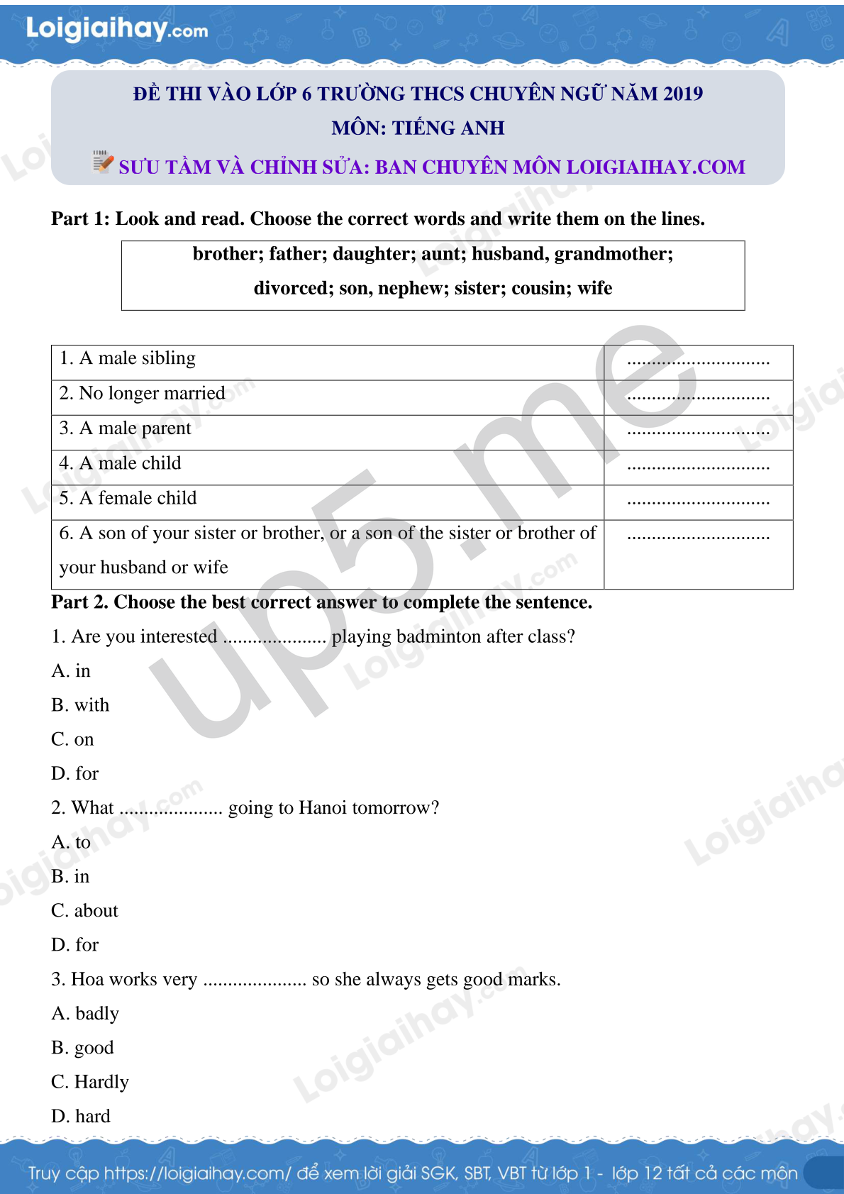 SƯU TẦM VÀ CHỈNH SỬA: BAN CHUYÊN MÔN LOIGIAIHAY.COM