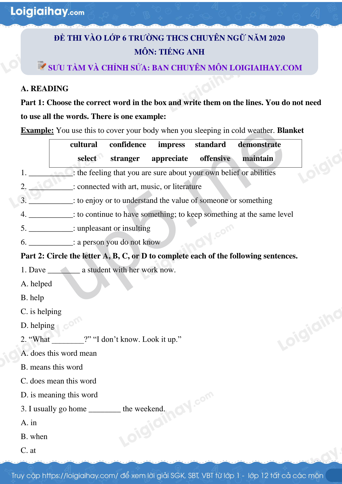 SƯU TẦM VÀ CHỈNH SỬA: BAN CHUYÊN MÔN LOIGIAIHAY.COM