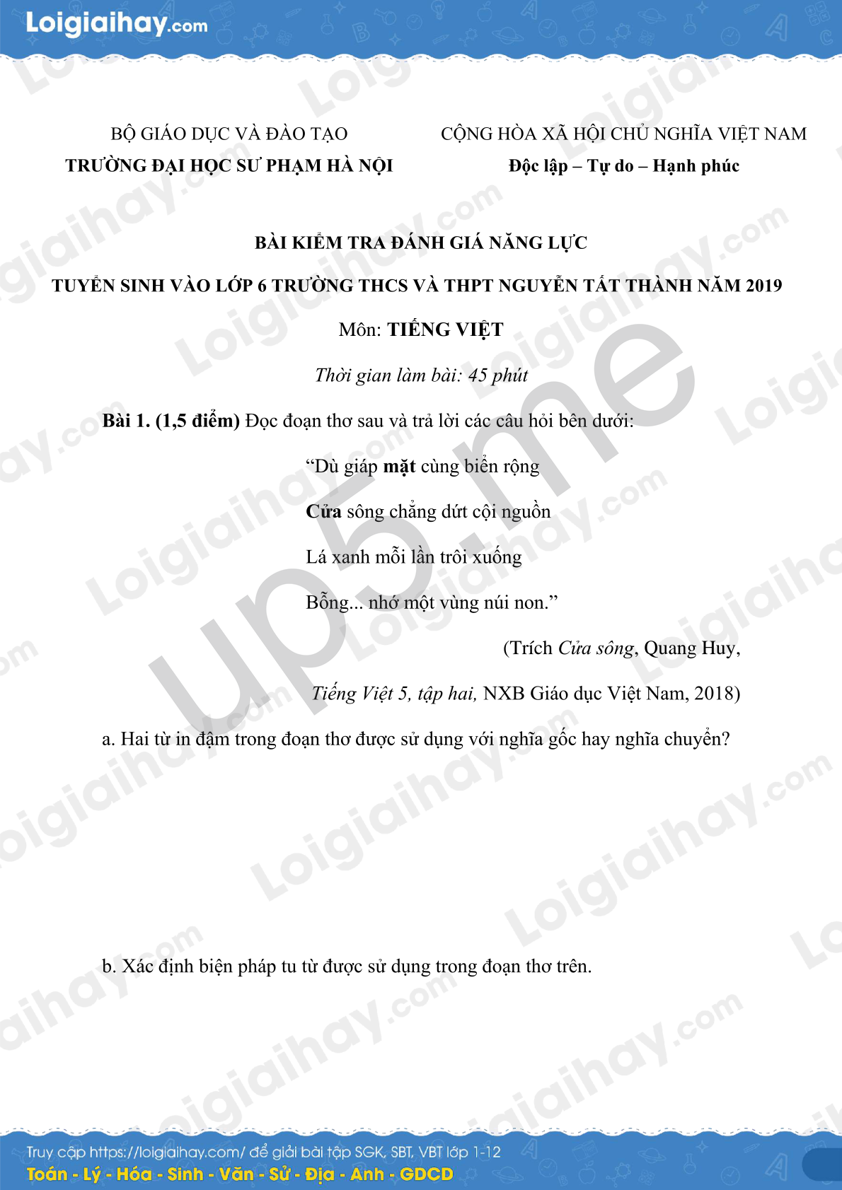 Môn: TIẾNG VIỆT