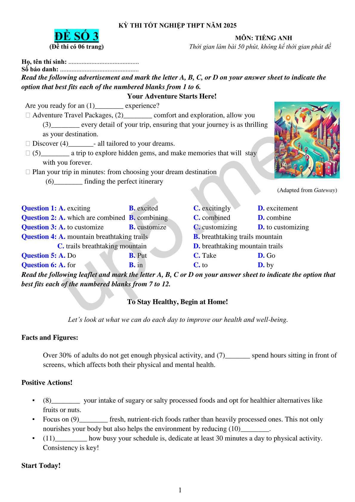 ✈️ Adventure Travel Packages, (2)________ comfort and exploration, allow you (3)________ every detail of your trip, ensuring that your journey is as thrilling as your destination.