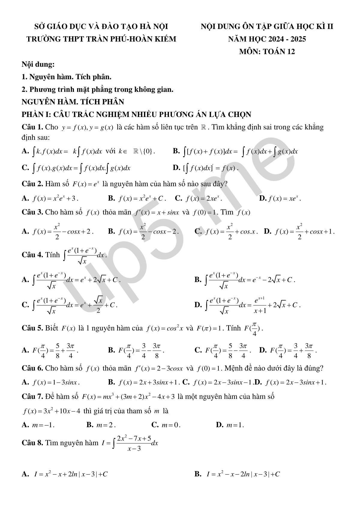 1. Nguyên hàm. Tích phân.